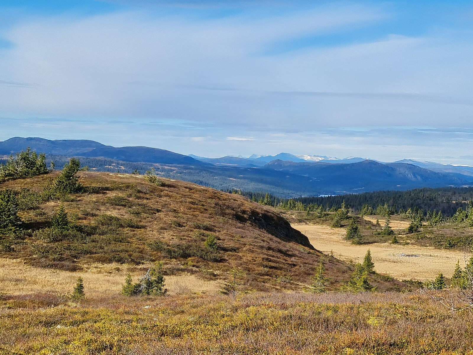 Etter at Sigrid og jeg hadde klargjort Ginahytta for vinteren, ville Sigrid gå over Hærfjellet, mens jeg gikk til Prestkjerringa. Tørt og fint å gå, i forhold til tidligere i høst/sommer. Vel nede igjen på Nysetra kjørte jeg til Hærfjellet parkeringslomme, og gikk oppom Hærfjellet. Turen inkluderer følgelig de 2.6 km med bil fra Nysetra til parkeringslomma. Flott turvær, sol og 5-6 varmegrader.