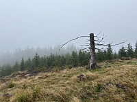 Turen gikk via Kraftkollen og videre langs merket sti frem til Oppsalsetra. Herfra langs gjengrodd traktorvei opp til "toppen" av Folaberga. Denne var verken markert eller lett å skjønne hvor toppunktet var på da hele området var flatt og uten sikt. Selve toppen ligger inne i et tidligere hogstfelt med halvgamle trær.