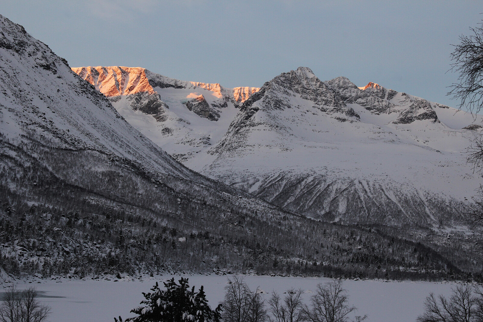 Sola forsvinner bak Tårnfjellet og Innerdalstårnet.
