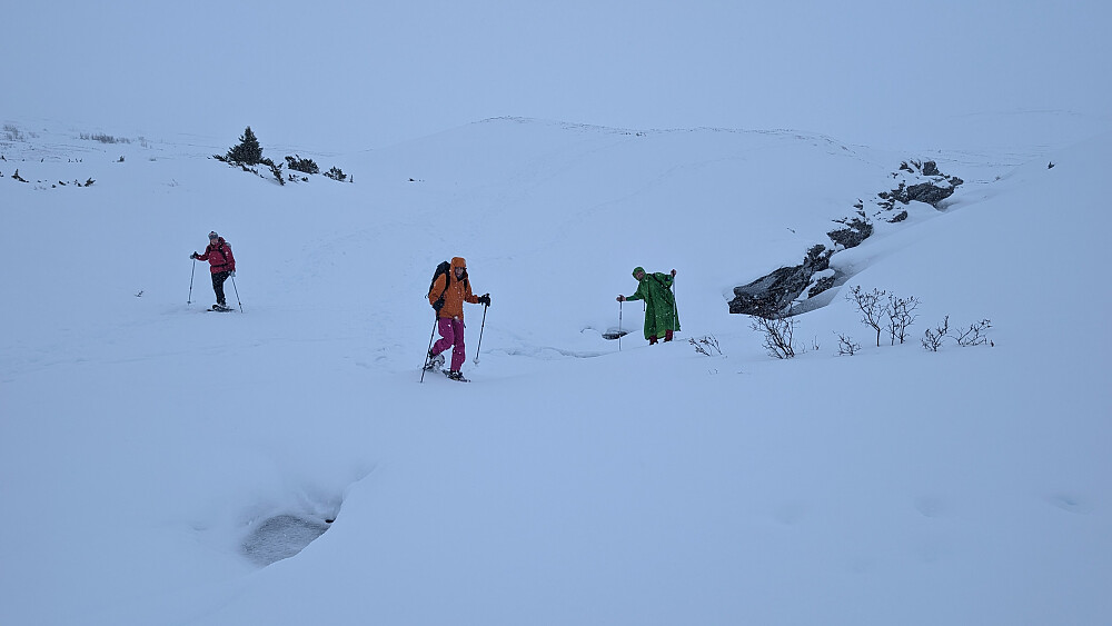 Peakbooktreff på Veslebu. Denne gang var det truger vi skulle benytte. Været var slett ikke på vår side, men ut på tur skulle vi. Det ble en slitsom og krevende tur. Målet var Vardhovdtinden på 1456 moh. Bra med snø i skogen og jeg kjempet mot mye snø og kladder under trugene før vi kom litt opp på snaufjellet. Der ble det snillere føre, men regn og etterhvert sludd. Det ble mye våte klær og kaldt i vinden oppe på fjellet. Det ble ingen lang pause ved toppvarden. Vi fant oss en plass litt under toppen der vi hutrende kunne få i oss litt mat og varmt drikke. Greit å gå nedover igjen og med tanker om ei varm flott hytte der både øl og nystekte vafler ventet på oss. Takk for en tur der vi virkelig fikk kjenne på været i fjellet.