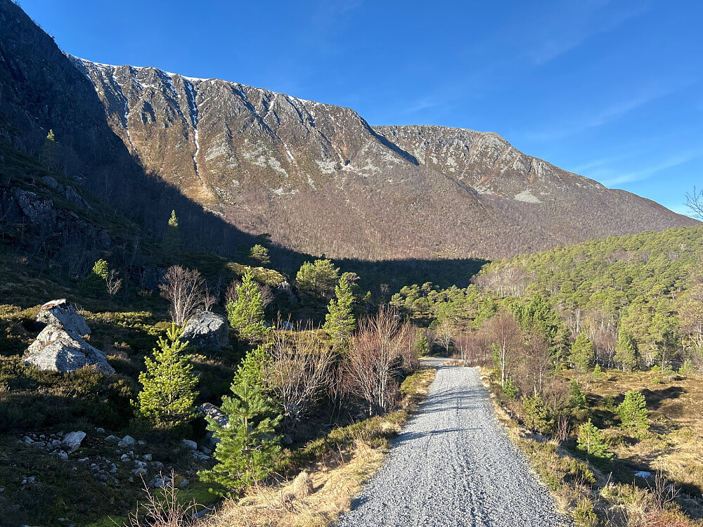 Jeg trodde det gikk an å kjøre opp til Gjersetvatnet, men veien er visst vanligvis vinterstengt pga fare for telehiv, og ellers stor slitasje på vinterstid. Om sommeren kan man kjøre helt opp til Gjersetvatnet mot vipps-betaling.