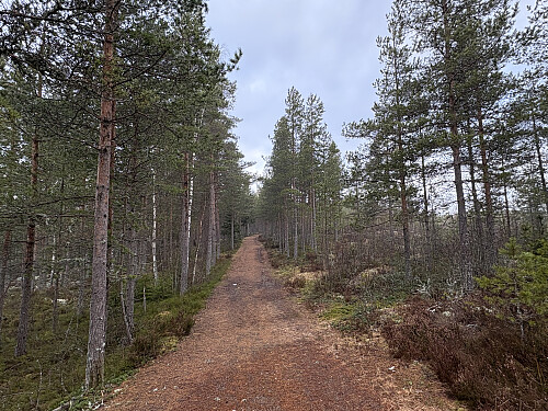 Litt sør for Skogheim gikk jeg ut av stien og satte kursen direkte opp til Kinnåsen. Herfra inn på sti igjen via Kinnshøgda og tilbake til bilen.