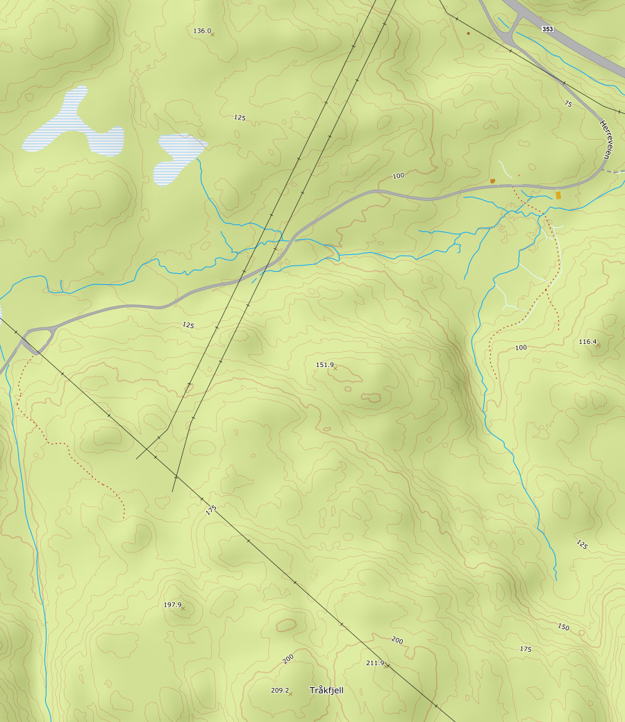 Parkerte bilen like ved hovedveien der hvor veien opp mot Tråkfjell starter. Her er det låst bom, men plass til å parkere 3-4 biler like ved bommen. Fulgte så veien opp til en snuplass der hvor veien passerer under høyspentledningen. Herfra fulgte jeg sti frem til toppen, først litt sør for høyspenttraseen så i selve traseen opp til toppen. Det var flere omtrent jevnhøye koller der oppe, så jeg tok en liten runde rundt på toppen for å være sikker på å ha vært på den høyeste:) En av kollene var markert med en stor varde, men litt usikker på om dette var den høyeste.