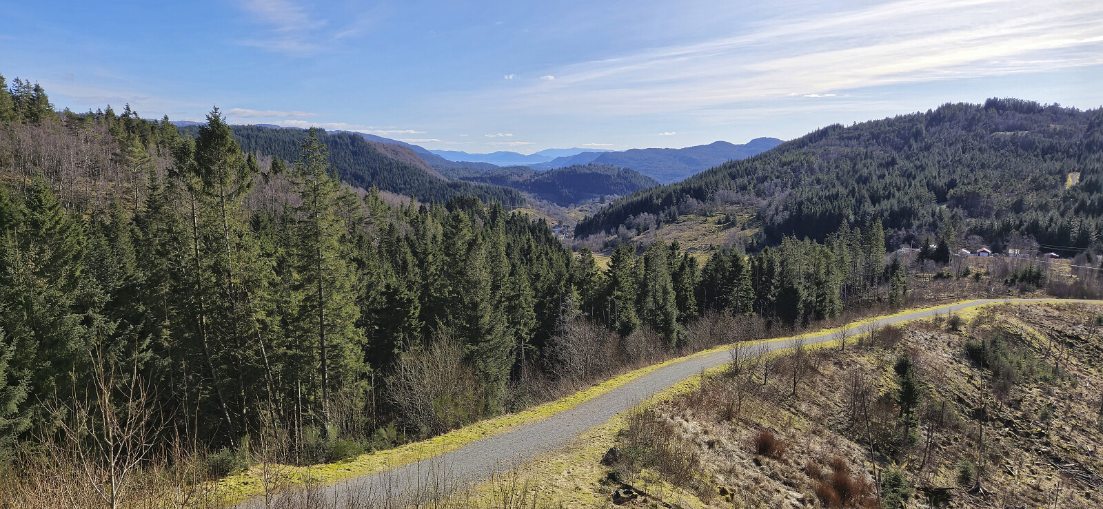 After returning to the parking lot, my initial plan had been to simply follow the same route back to Kaland, but I now concluded that this would be a waste of a very nice day and instead ended up following various gravel roads slightly further west. In fact, except for minor off-trail detours to Midtfjellet and Sauatona, I was on nice gravel roads all the way to Nedre Sandven, from where there was only a short walk along the main road to the bus stop to wait for the bus back to the city center.