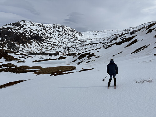 Det var ganske sparsomt med snø opp den første bakken, derfor valgte vi å kjøre rundt på baksiden på tilbaketuren.