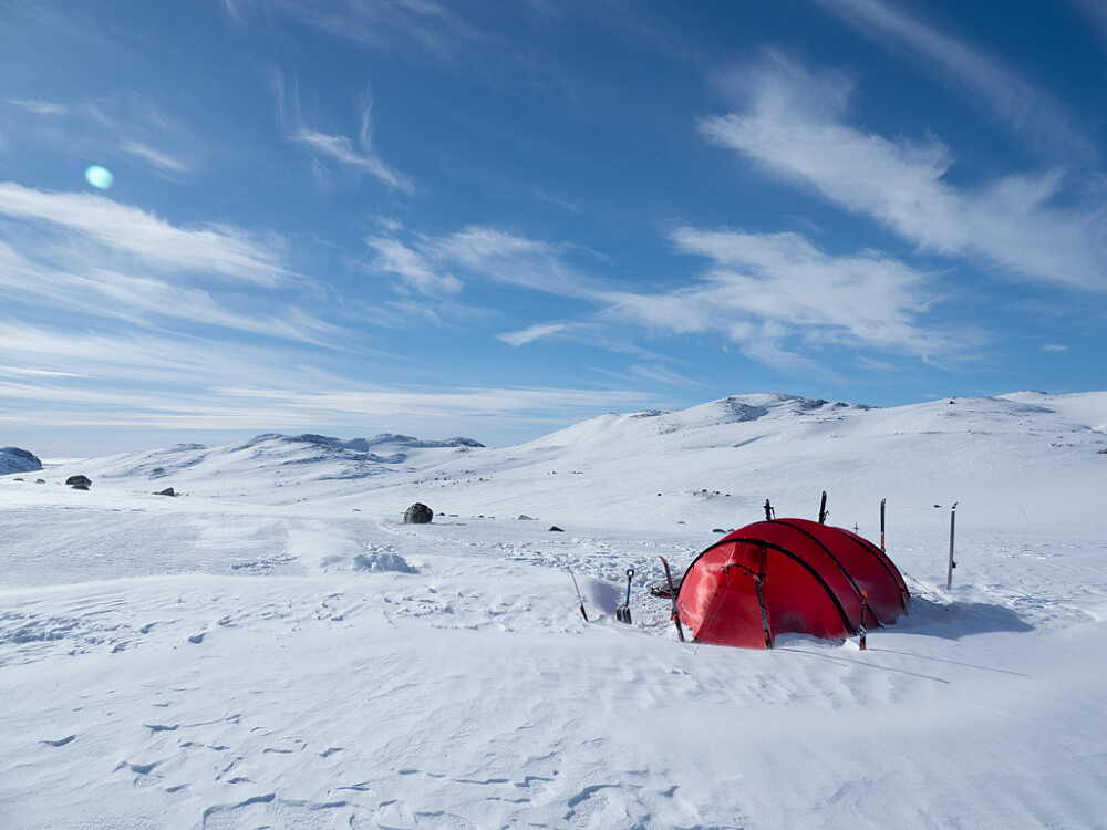 Om natten hadde jeg masse mageknip og sov knapt. Neste dag var det sol, og vi kom oss ned til Finse. Der ble magen min ordentlig vrang, og jeg lå i senga mesteparten av dagen etter med svært hyppige dobesøk. Glad jeg slapp det i teltet, tross alt. De andre var ute og gikk påskeskirenn og så på kiterne.