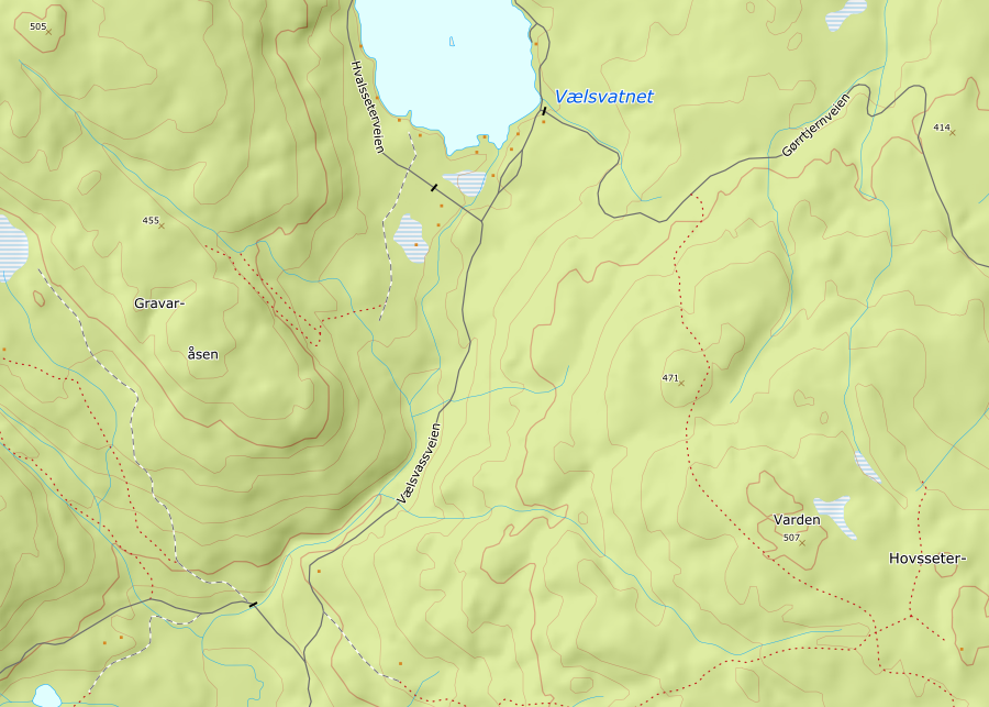 Jeg fulgte bomveien opp fra Hensmoen til p-plass i hyttefeltet oppe ved Vælsvatnet. Herfra på vei, deretter sti innover mot Hovseterhøgda. Jeg gikk innom Hovseterhøgda NV først, en åpen skogskolle med brukbar sikt i flere retninger. Etter denne kom jeg litt ut av stien, og bushet meg frem via Hovseter til Hovseterhøgda SØ som trolig er noe høyere enn NV-toppen. Selve toppunktet ligger inne i skogen, men like ved ligger ei hytte og herfra var det flott utsikt sørover!