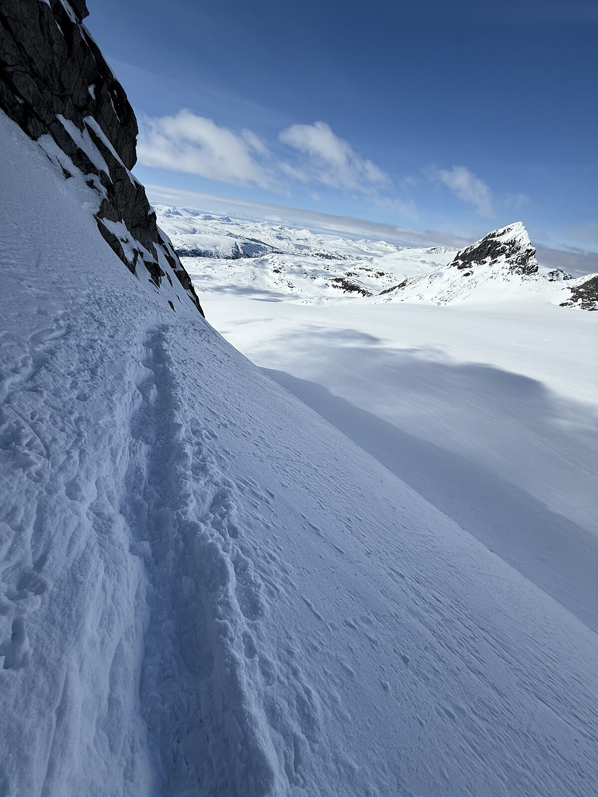 Startet fra familiehytta i Heidal i 0700 tiden og la avgårde fra Krossbu 0830. Fikk svettet fra meg oppover lia og ankom foten av Kniven etter ca 1,5 time. På med stegjern og frem med isøks var det bare å gyve løs på dagens første topp. Prøvde meg på en spansk en med å ta meg opp på Sauen fra nordsiden. Det gikk forsåvidt fint, men var såpass bratt at det fristet mer å gå rundt ned igjen. Videre bort til foten av Sokse og ny runde med stegjern og isøks. Fantastiske forhold denne dagen, med "E6" stier, stuegulv på toppene og stort sett vindstille. Videre opp på Veslebjørn Nord før en kort aketur før den lengre oppstigningen til Storebjørn. Videre opp på Veslebjørn og dagens høydepunkt med eggen bortover mot Veslebjørn vest. Dagens største utfordring for meg ble opp, og ned igjen, til Skeie. Det var det altså sabla bratt, men gode spor, stegjern og to isøkser gjorde det håndterbart. Småseigt opp bakken til de to Kalven toppene der siste rest av matpakka ble fortært. Herlig nedkjøring tilbake til Krossbu og 14 nye kryss i boka.