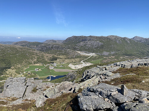Endeleg oppe på fast grunn ved stidelet mot Dalen la eg ifrå meg sekken og fekk med meg hovudtoppen på Guromyrfjellet 3-400m lenger sør. Herifrå var det bare å stokka beina ned den gode, men bratte stien ned til Dalen der eg blei henta ein halvtimes tid før tida.