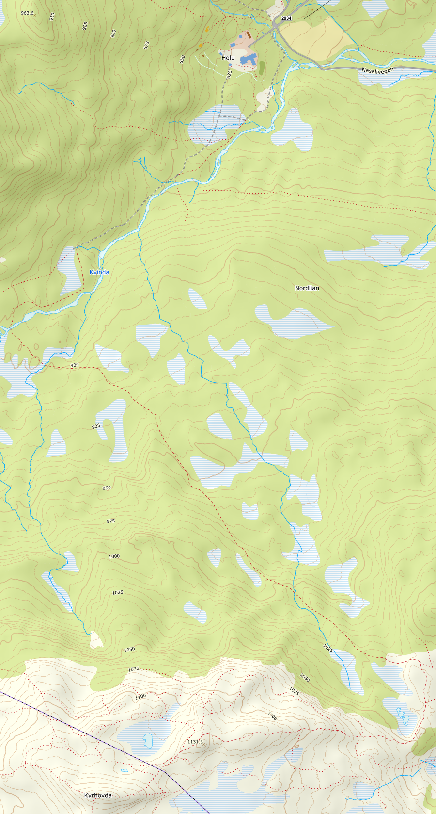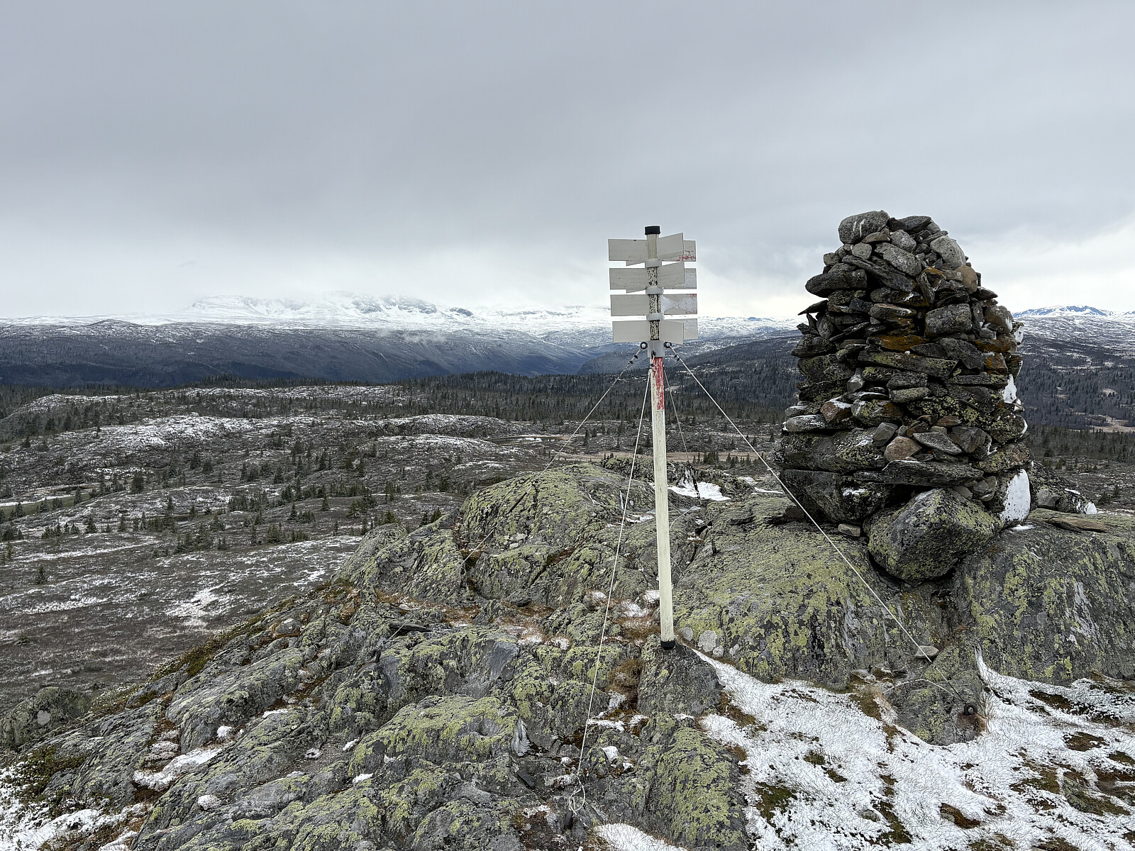 Fra Ål sentrum kjørte jeg veien som går nordvestover helt frem til p-plassen ved Holu. Herfra fulgte jeg sti videre helt til topps på Kyrhovda. Det var kommet litt nysnø natta før, men ikke mer enn at det bare lysnet opp litt. Kort og fin tur.
