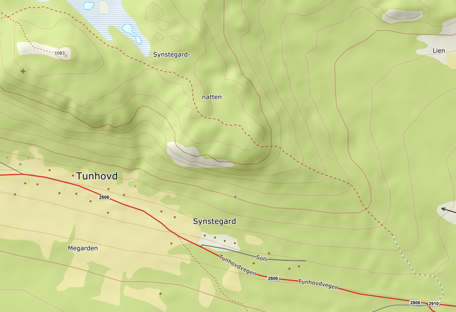 Parkerte på en lomme ved riksveien ved krysset Nesbyen/Numedal. Herfra fulgte jeg merket sti opp til Tunhovdåsen. Stien gikk jevnt oppover i skogsterreng helt til jeg kom opp til Synstegardnatten. Herfra tok jeg en liten avstikker ut til utsiktspunktet før jeg fortsatte videre. Stien førte meg rundt hele Tunhovdåsen før jeg kom meg opp på toppen fra vestsiden. Det går et tråkk gjennom krattet opp fra østsiden også som jeg ikke så på vei opp, men sporet på vei ned følger dette tråkket. Utsikten fra toppen er storveis med en staselig varde.
