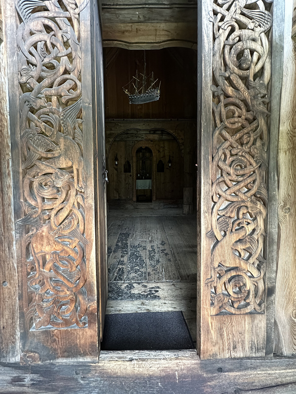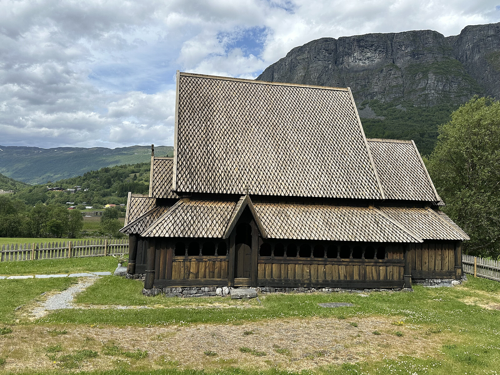 Grunnplanen for kirken er en overgangsform mellom type A og type B stavkirke. Den har fire frittstående stolper som bærer et bratt saltak over kirkeskipet. To ekstra hjørnestolper bærer et tilsvarende bratt, men lavere saltak over koret. Kirken har derimot ikke forhøyet midtrom slik de andre kirkene av type B har. Korskillet er lukket og har kun en rundbuet, men rikt dekorert portal (kopi). Rundt kirken er det svalganger med oppbygg foran vestportalen og sørportalen.