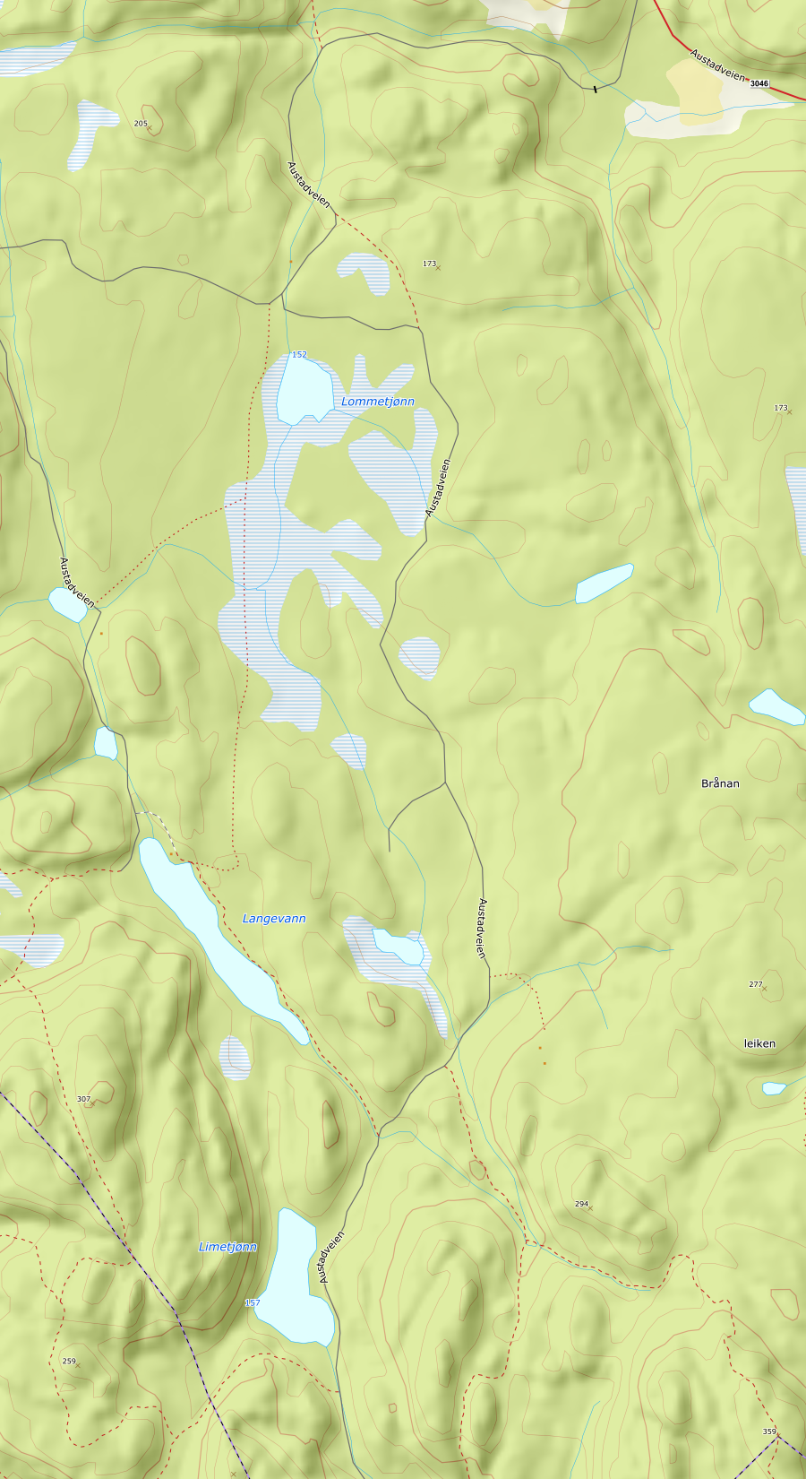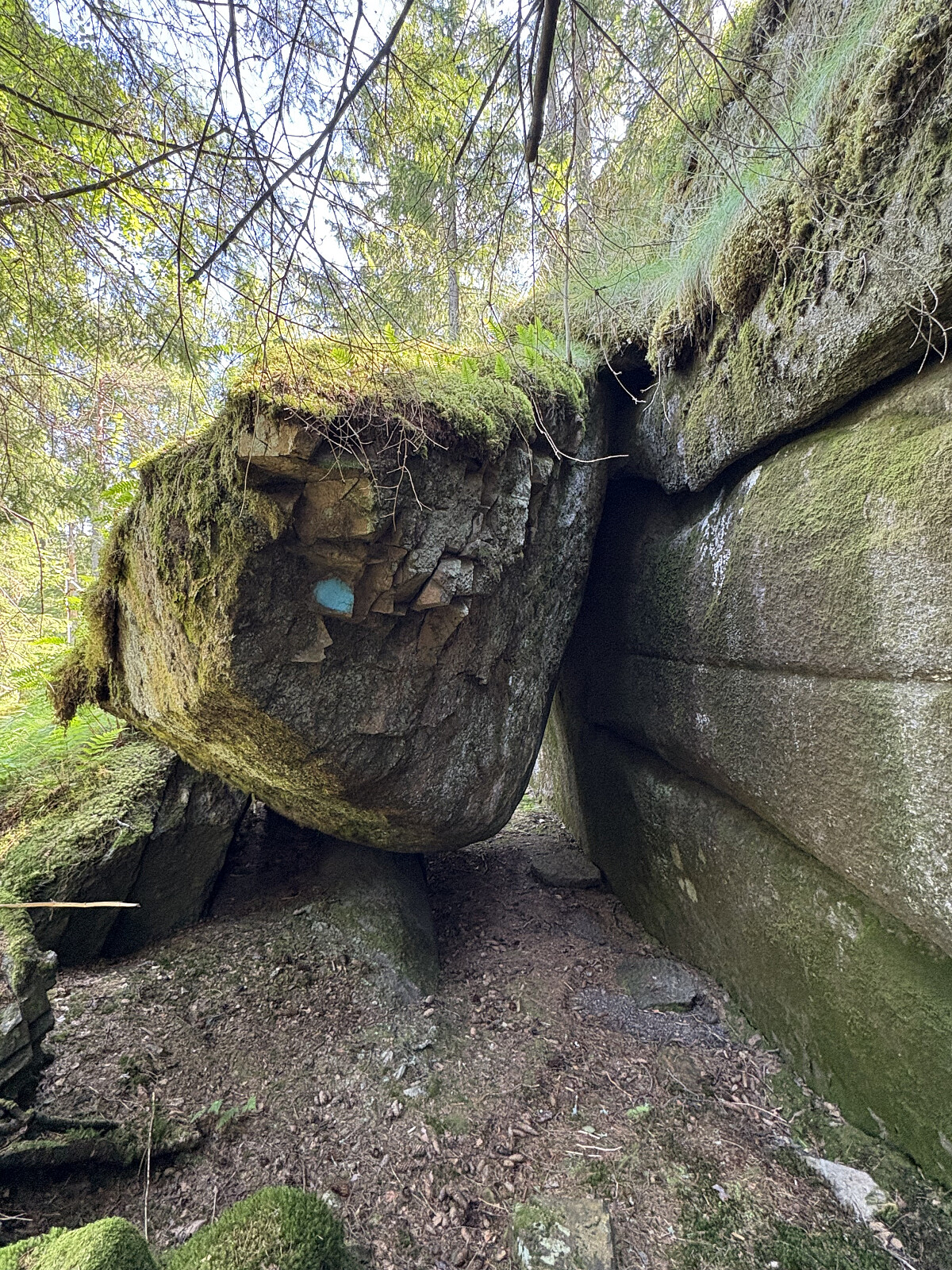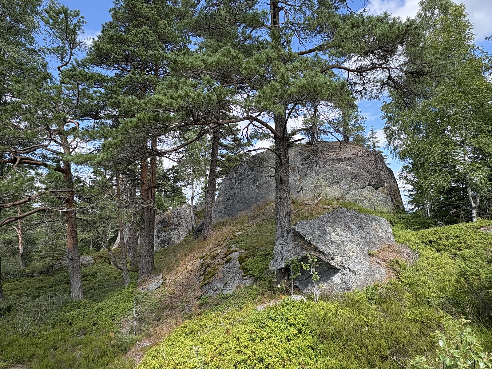 På vei tilbake mot sykkelen kom jeg ut av stien og oppdaget dette da jeg var 30 meter nedenfor toppen av Skauguttleiråsen. Jeg tok derfor turen oppom denne også før jeg fortsatte ned til sykkelen. Sykkelturen gikk unna med et akkompagnement av tordenskrall som stadig kom nærmere, og jeg fikk akkurat festet sykkelen til bilen da himmelen åpnet seg fullstendig:)