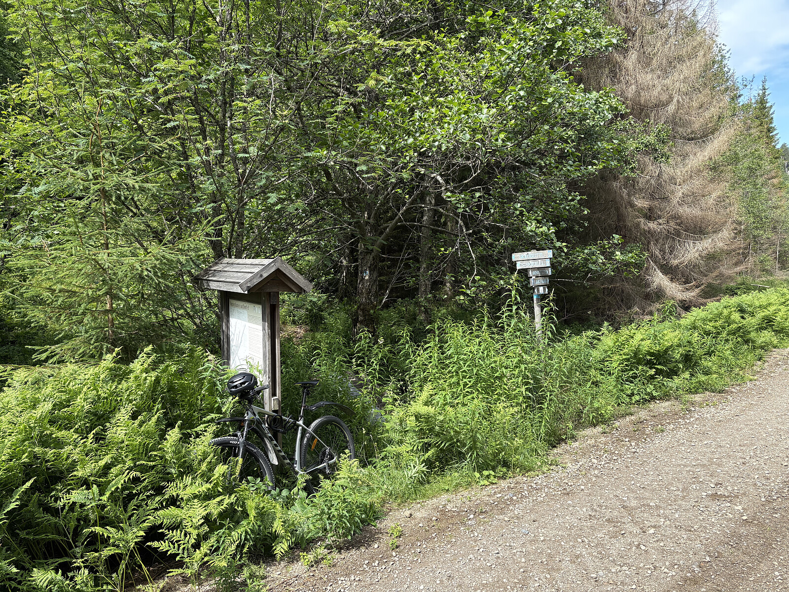 Jeg kom kjørende nordfra og svingte inn på en stikkvei litt sør for Gorningen. Denne var stengt med bom så her var det bare å gjøre seg klar til en litt lengre sykkeletappe innover mot Svarteberget og Skilskjølen som var målene for turen.