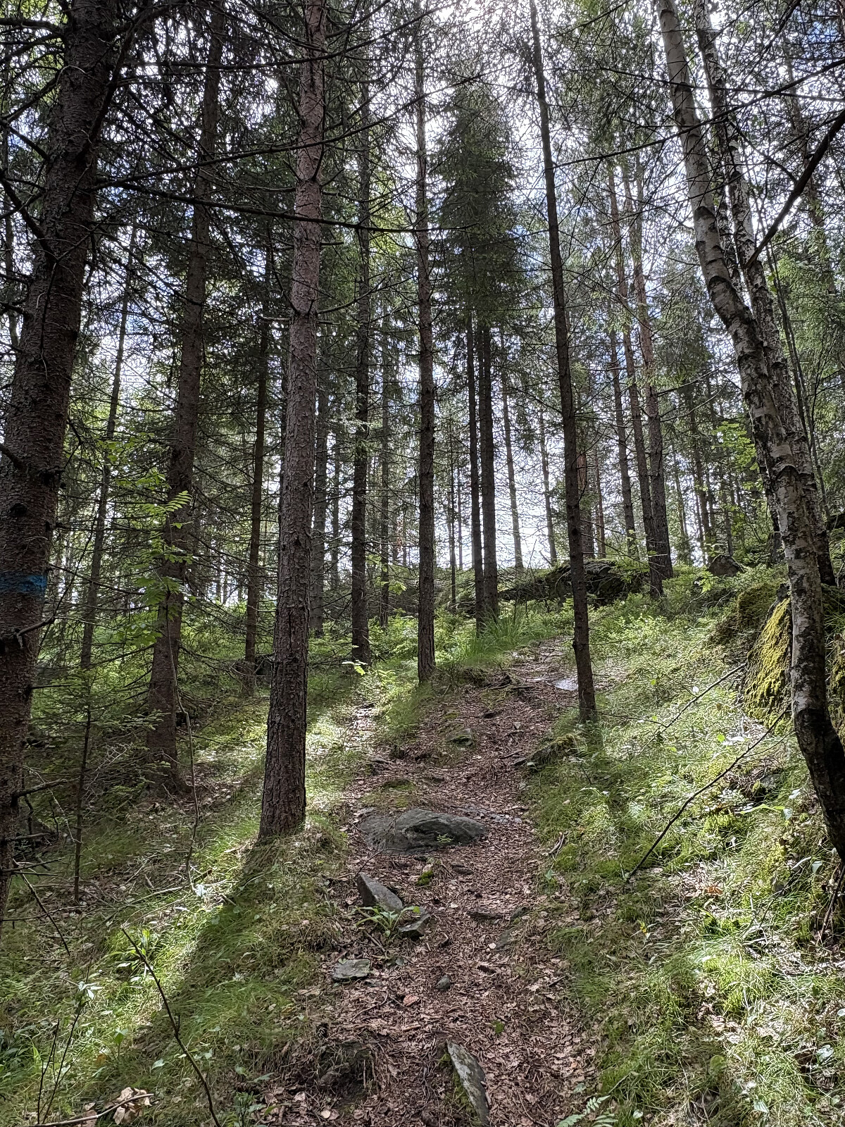 Jeg kjørte fine grusveier frem til jeg var rett nord for toppen og parkerte bilen i en liten lomme langs veien. Herfra fulgte jeg merket og bra sti til toppen av Storfjell. Toppen var en bar kolle som stakk godt opp over skoggrensen og utsikten var deretter:) Jeg tok en god matpause på toppen før jeg gikk samme vei tilbake til bilen.