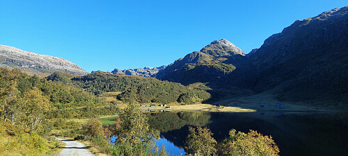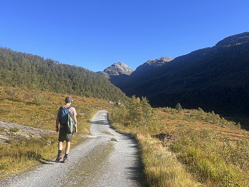 Første 5 kilometrane inn Steinkvanndalen gjekk på grusveg. Her hadde det vert fint med sykkel, i alle fall på returen!