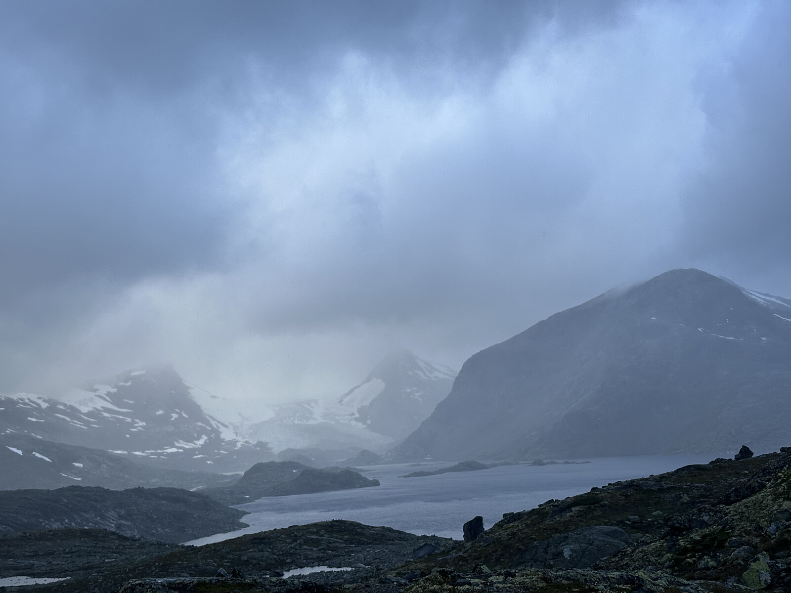 Våken i 04.30 draget så kjørte meg en tur til Fondsbu og tusla innover dalen. Det var surt, vått og kaldt. Ingen god opplevelse, men fint å få lufta seg. Lenge siden jeg har gått i dunjakke og olabukse på tur. En stil jeg nok ikke gjentar på slike dager i høyfjellet, men olabukse er av en eller annen grunn helt sjef. I skogen er det da tradisjon.