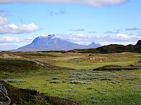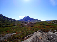 Neste dag våknet vi opp til bedre vær og la i vei mot Tjoarvihytta. Godt merket sti oppover i terrenget til vest-enden av Litl-Dorro vannet der jeg lå i telt for noen dager siden for å gå på Nordre Saulo. Nordre Saulo var dessverre skjult i skyene så fikk ikke vist denne majestetiske toppen til de andre. Bro over elva ved utløpet av Litl-Dorro. Så var det litt opp og ned men relativt lettgått terreng videre. Jeg tok en avstikker til PF100 toppen Jåttuvarre, lettgått terreng opp her og ikke noe problem å finne grei rute opp og ned. De andre hadde fortsatt å gå mot hytta. Jeg kom ned igjen på stien ett stykke bortenfor der jeg gikk opp, men hadde jeg sett godt på kartet kunne jeg heller tatt en annen vei ned for å korte ned veien enda mer. Fulgte god sti videre mot Tjoarvihytta og rett før jeg kom frem til hytta tok jeg igjen de andre. Hytta ligger like ved veien til Balvannet og vi var litt spente på om det kom til å være mange folk her, men vi fikk hytta for oss selv. Brukte den gamle delen som oppholdsrom og jeg og Lena sov i den store sovesalen.