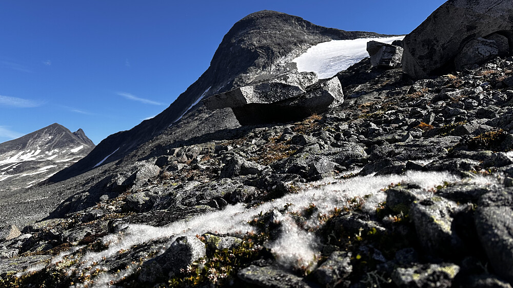 Roleg morgon inne ved Olavsbu og fint med frukost kaffien i stilla. Returen tilbake til Leirvassbu vart med ein forandring utifrå første plan. Som var tenkt over Austre Rauddalstinen og vidare via Store & Vestre Rauddalstindane.