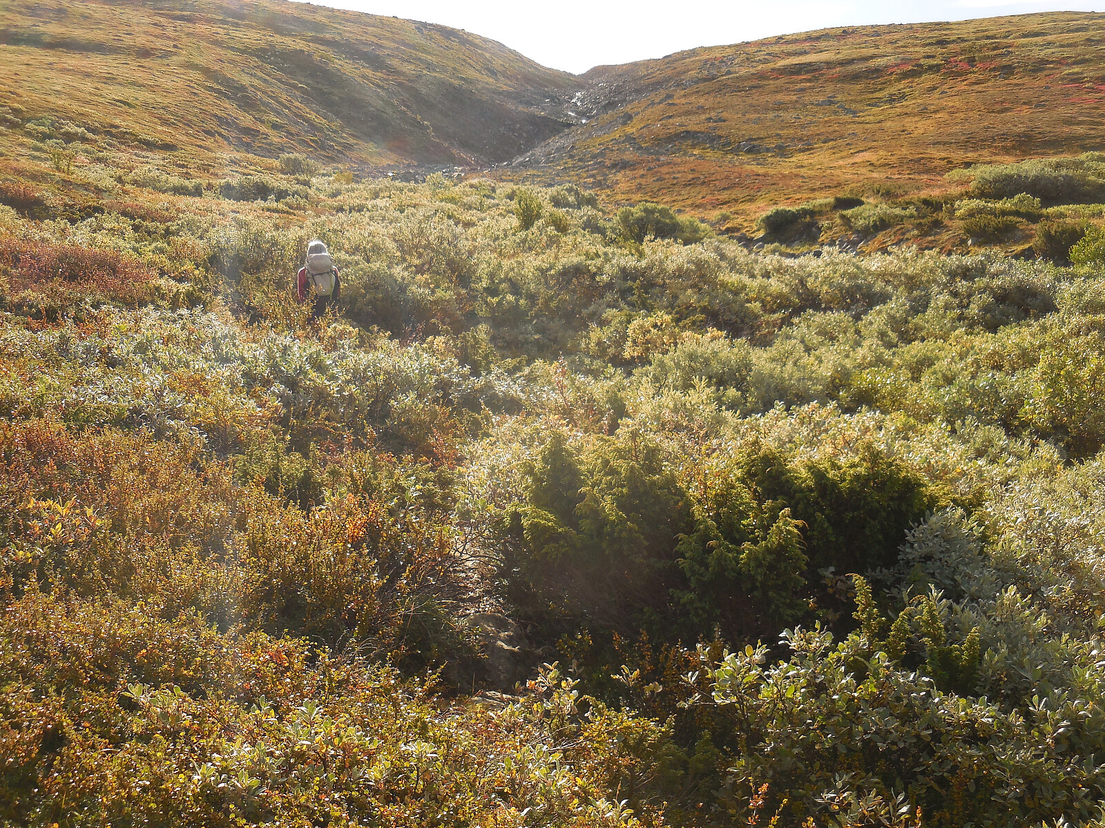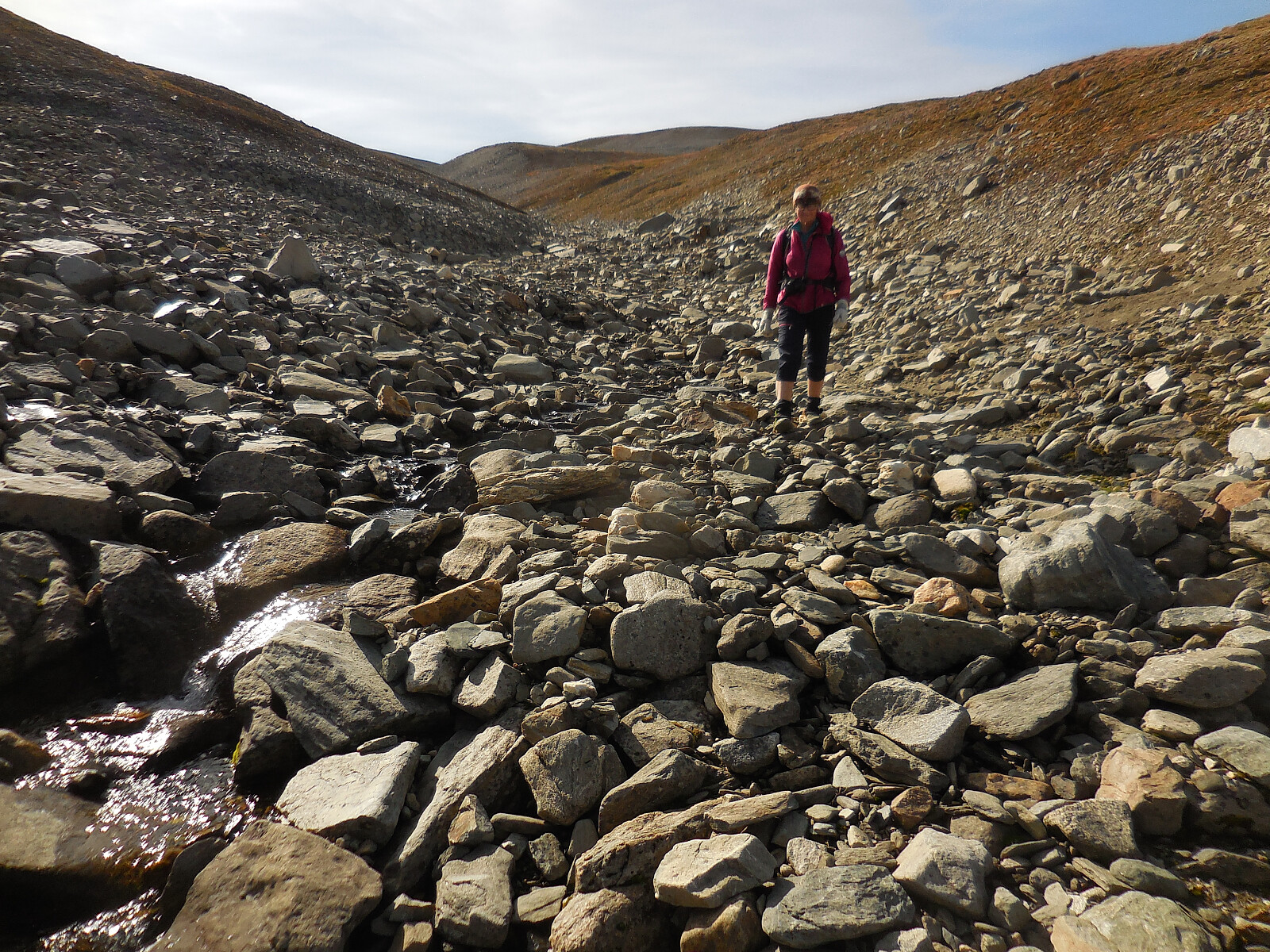 På vei ned Kluftbekken. Her pleide det å ligge snø hele året, men den tiden er forbi!