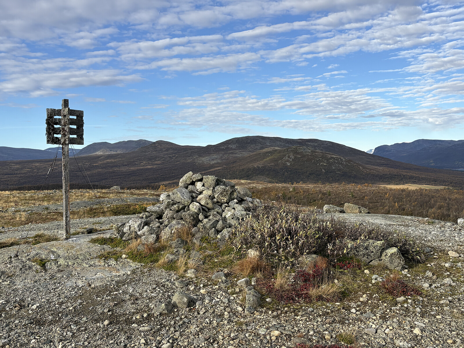 Jeg kom kjørende fra Skåbu og kjørte inn på Jotunheimvegen. Fortsatte til høyre i første avkjørsel etter bommen og kunne kjøre nesten til topps på dagens første topp, Finnbølshaugen. Det gikk fint å parkere ved den lille bua i enden av veien, og herfra var det bare 5 minutters gange på sti opp til toppvarden. Utsikten var strålende, herfra kan man blant annet se over til Mukampen i nord, Nautgardstinden og Stornubben i vest samt mange andre kjente og ukjente topper og nubber i alle retninger.