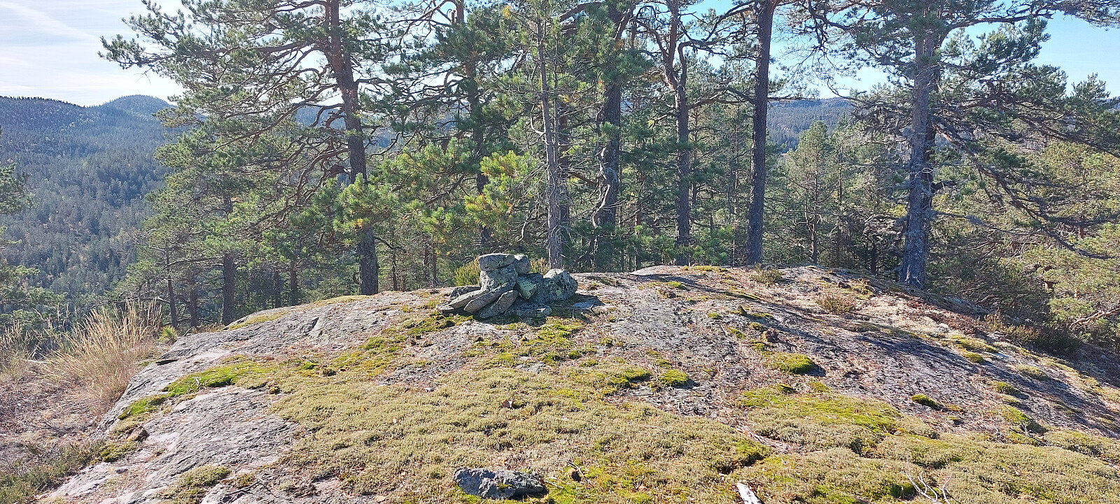 Tok en traktor vei inn til høyre og gikk opp bakken ved en gammel sag. Fulgte traktorveien vestover. Gikk ettehvert over til mer ATV spor og sti. Denne endte ved en stang for plassering av salt til vilt. Herfra ble det busking i lyng opp til toppen. Igjen flott utsikt ned til Espestøyl og vidre sørover mot Eikhom.