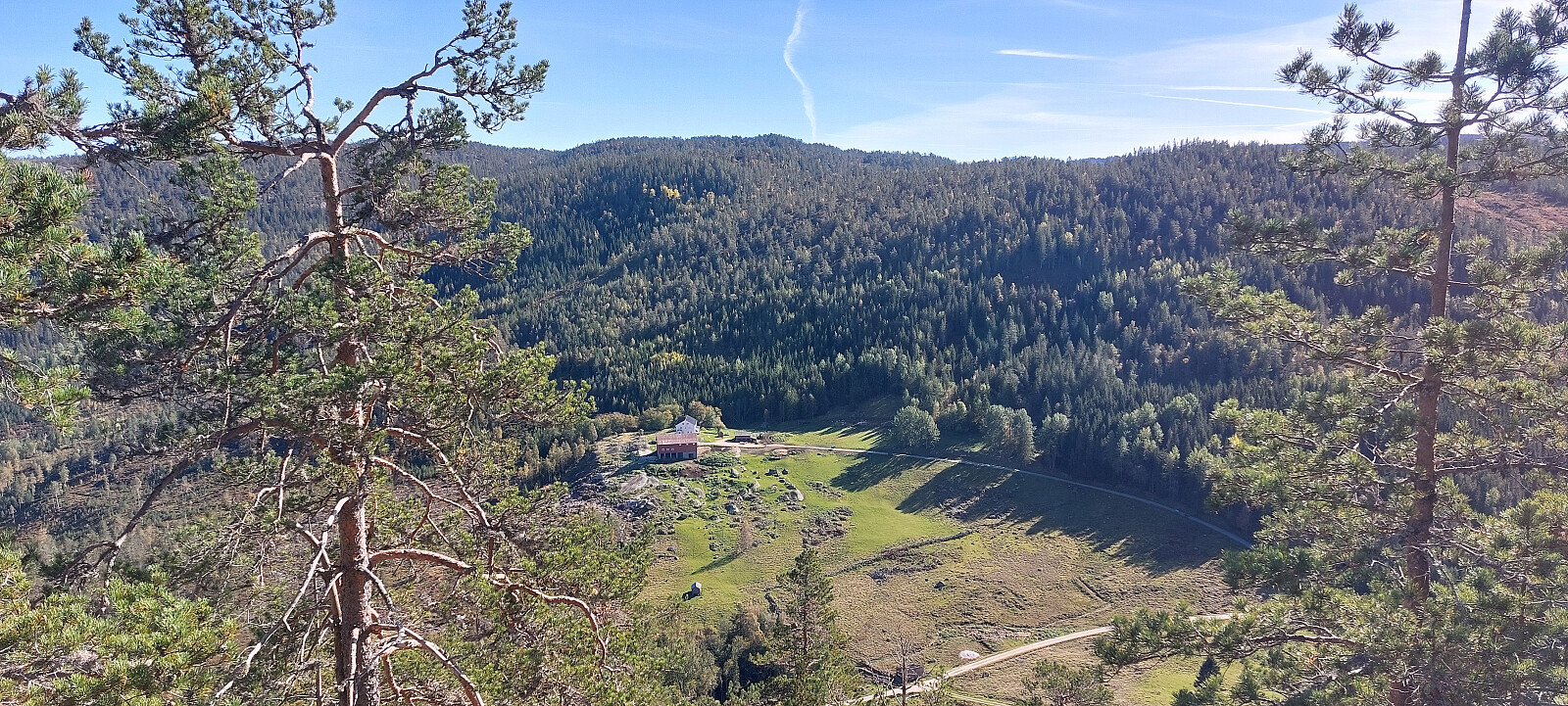 Nede ved bilen etter å besøkt Leirbekkheia kjørte jeg ned til første kryss og tok til venstre og opp mot Espestøyl. Kjørte inn til høyre til Nordre Espestøyl. Her ender veien ved noen hytter. Det bor en eldre kar på gården. Han var ute så jeg spurte om lov til å stå parkert mens jeg var på Hanekam og det var helt i orden.
