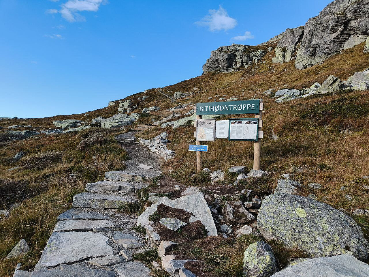 Tok det ganske med ro ned igjen, for ikke å provosere knærne unødvendig. Møtte noen folk på vei opp. Vel nede var formen fortsatt helt fin, så jeg campa og grilla litt pølser på gassgrill nær Båtskardet, og kokte kaffe og nøt godværet. Kjente at jeg ville en liten rusletur oppe på Flya også, og feire at 9 uker med kneproblemer i sommer nå endelig ser ut til i hovedsak å være over, takk og lov!