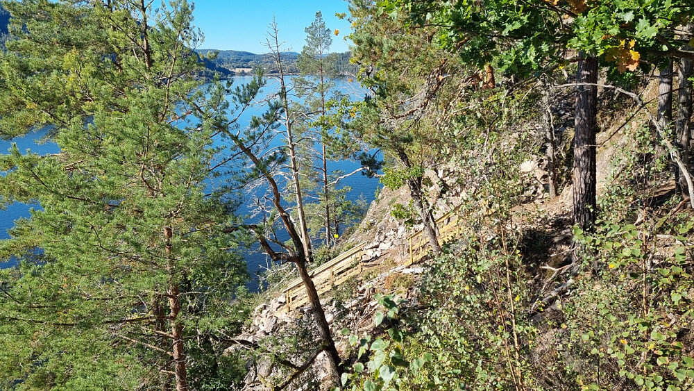 Nye fine trapper og god sti nå. Kosa oss oppe på toppen (sti merket Gravplass). Enda finere utsikt derfra. Nydelig vær.
