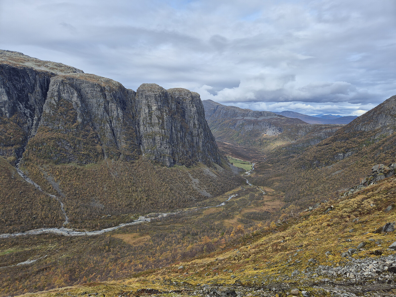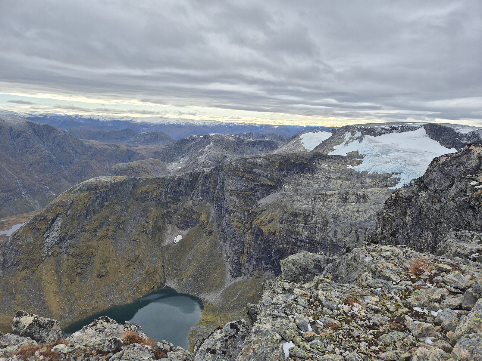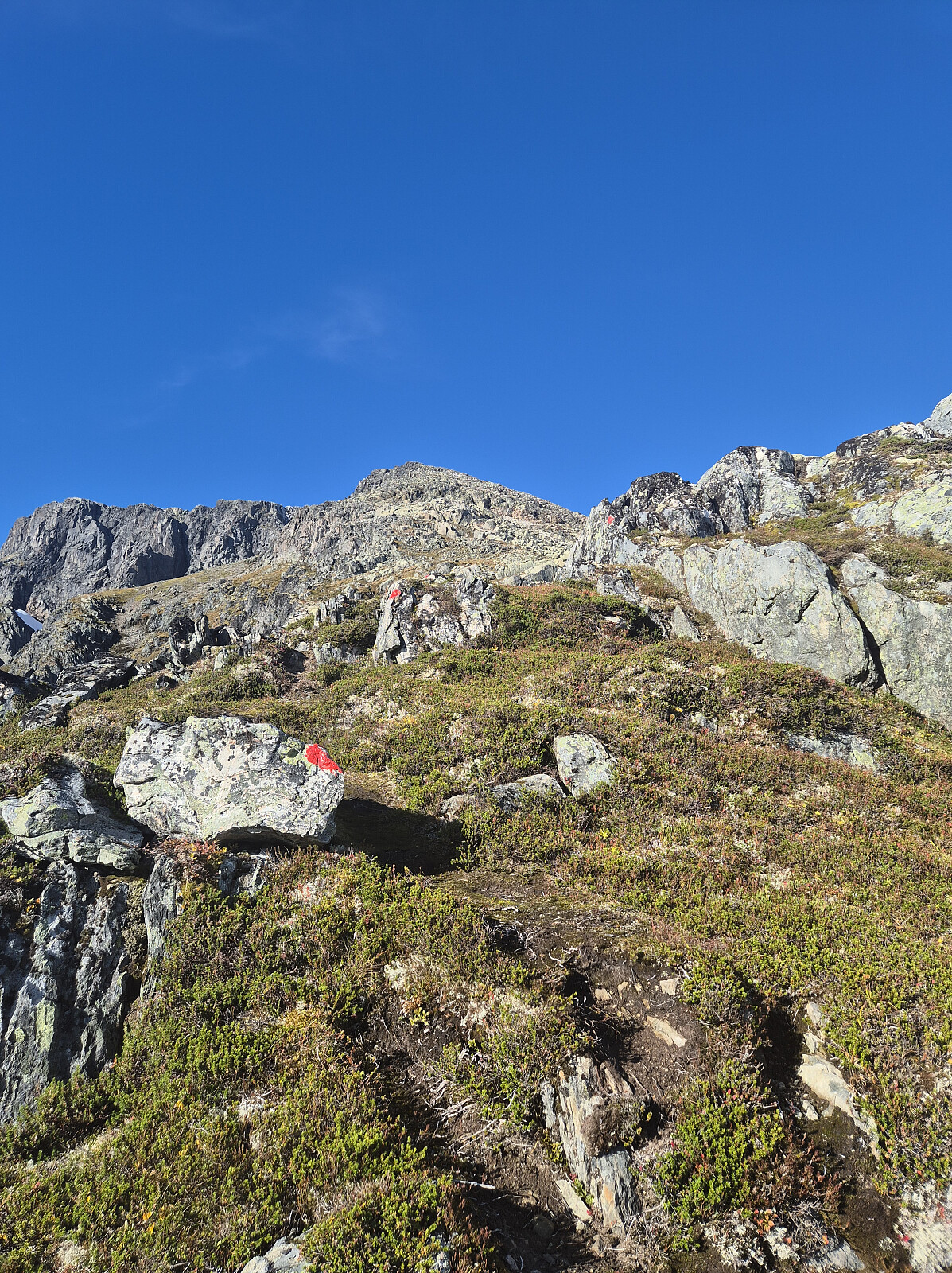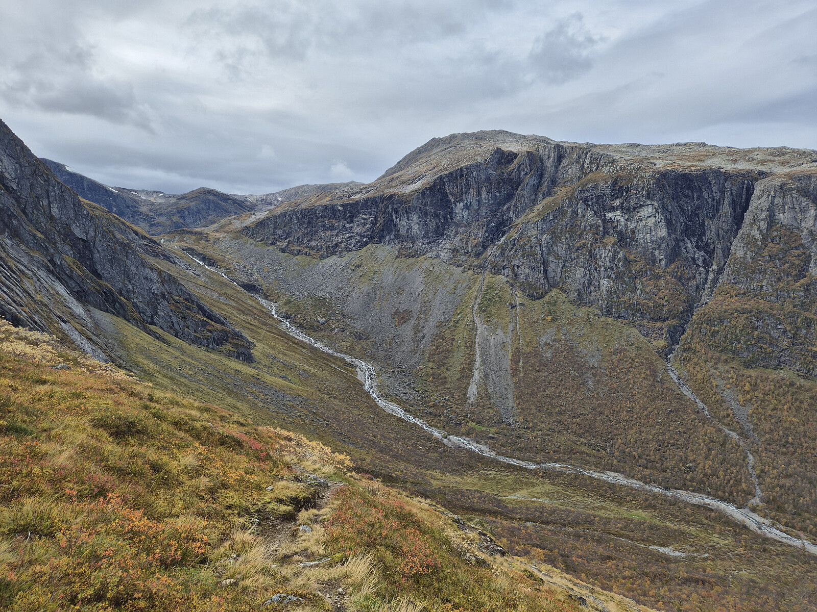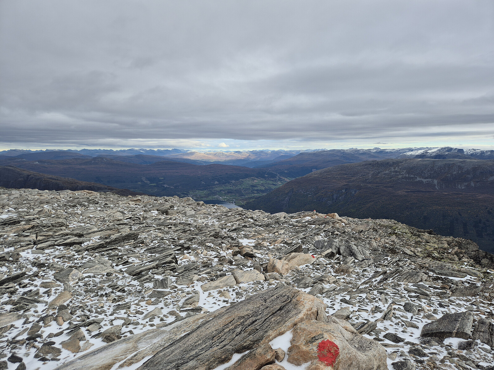 Etter uværet Amy var det meldt fint vær store delar av dagen. Køyrte til Kandal og parkterte ved Ytre Kandalsstølen. Lett tur innover dalen med god merking. Fulgte stien bratt opp mot Øykjeheivatnet. Oppe ved Øykjeheivatnet forstod eg at eg skulle eigentleg ta av litt før og følge ein sti, men den var ikkje like tydeleg. Gjekk langs Øykjeheivatnet og tok så opp lia og inn på merkt sti igjen opp mot ryggen av Botnafjellet. Godt merkt vidare oppover den bratte ryggen til toppen.