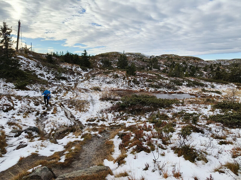 Litt snø her og der. Møtte noen rypejegere, og fant et ferskt rypehode på stien...
