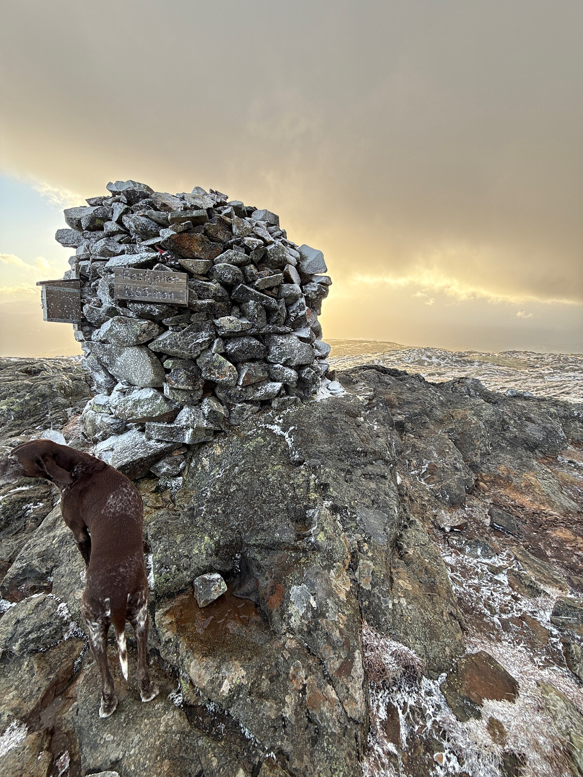Tur med Atlas etter besøk av feieren. Fikk ei skikkelig snøbyge i fjeset på vei oppover. Måtte ta det rolig nedover for å unngå trynings..