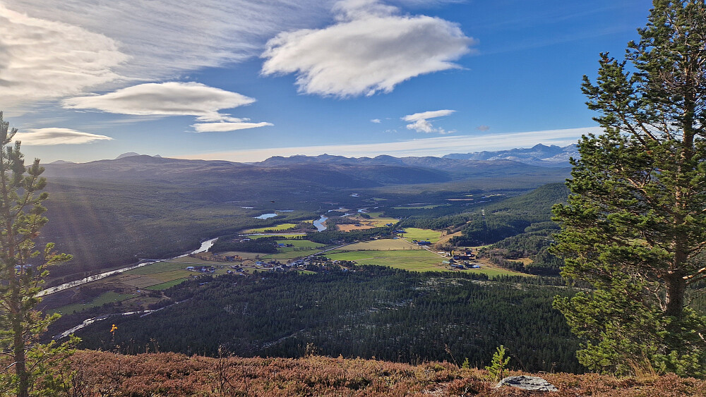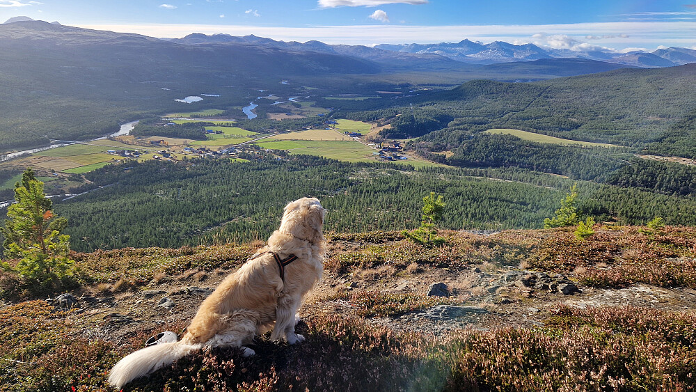 Knallvær på mårran så tok en tur til Grimsbu. Start fra brua.Gikk veien opp til øverste stien og vidre på stien opp til toppen. Alltid noe spesielt på denne turen med de gode minnene. Signering i boka og retur ned. Tok av fra stien og inn på "midtre"stien og fulgte den ned til veien. Lenge siden jeg hadde gått her så greit med litt forandring. Så bilveien ned til brua. Fint å være ute i slikt høstvær.