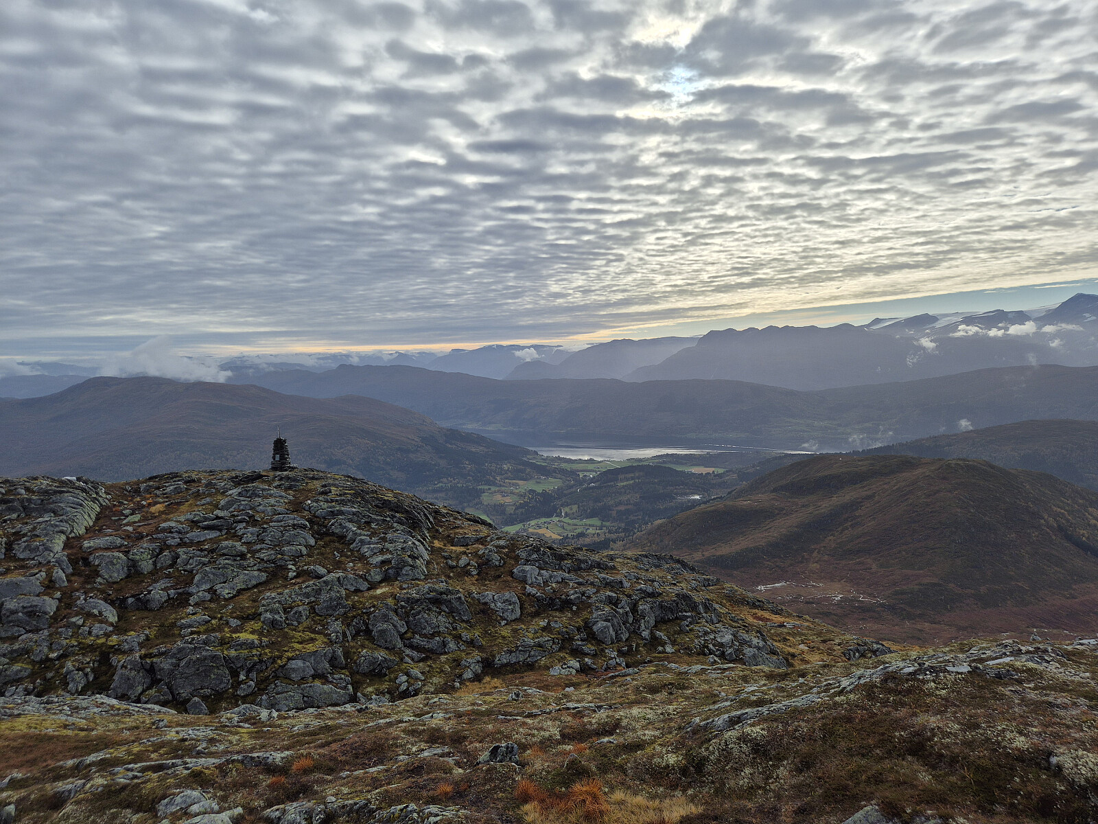 Flott dag på Vestlandet. Tok turen til Nordfjord og Trollevassnyken denne dagen. Etter å ha blitt anbefalt denne turen av lokale. Fulgte merkt sti opp mot Trollevassnyken, men oppe ved høgda tok eg av til høgre og sikta meg inn på Hjelmelandsvarden først. Flott utsikt frå toppen av Hjelmelandsvarden. Fulgte høgda vidare mot Trollevassnyken. Ein liten stopp for ein prat med ein "peakbooker" på toppen før eg gjekk vidare ned mot Holevassegga.