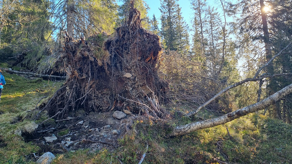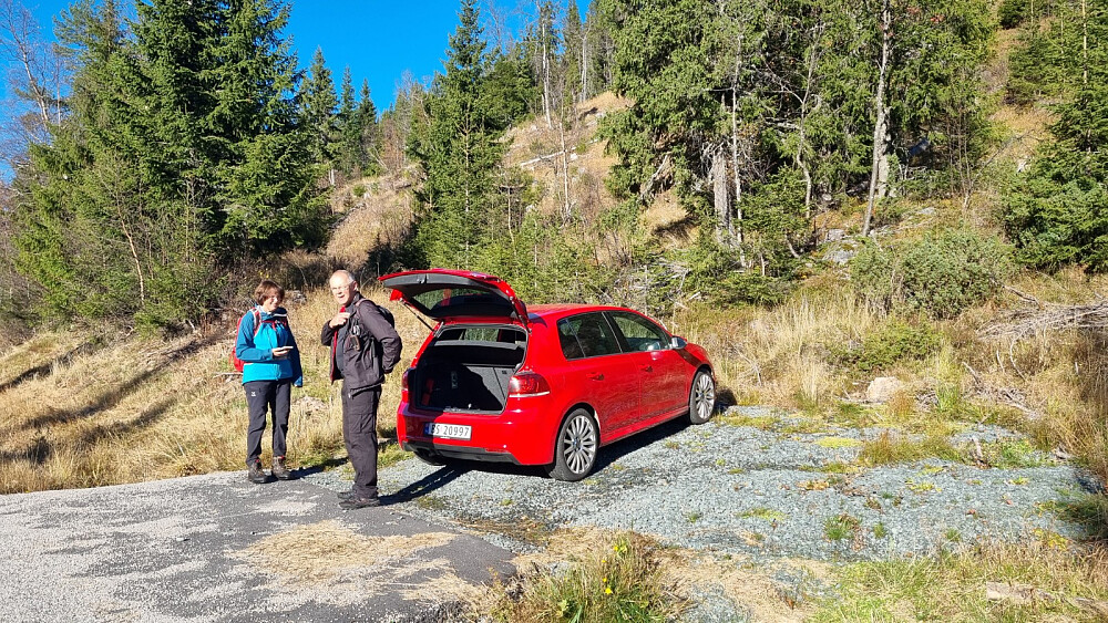 Appen ville ikke være med meg på tur. Måtte restarte den litt oppe i traktorveien. Derfor kortere GPS spor enn virkeligheten. Fin og varm dag på tur med Kristen og Berit. Kjente godt ettervirkningen av koronaen for noen uker siden ja. Ganske vått i terrenget etter alt regnet i høst. Litt rotvelter vi måtte gå rundt og klatre over. Lang god pause på toppen. Utsikt over fjell rundt om. Videre til Vingravlinuten.