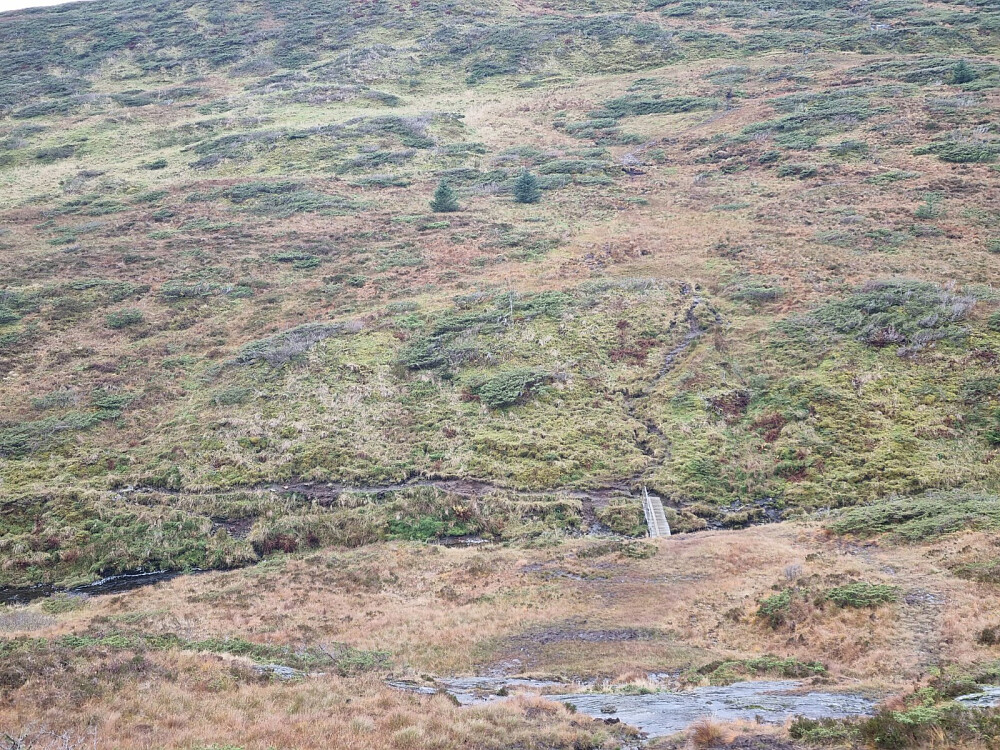 Nesten nede til Dyrdalselven. Her følger jeg stien til venstre rett over broen.