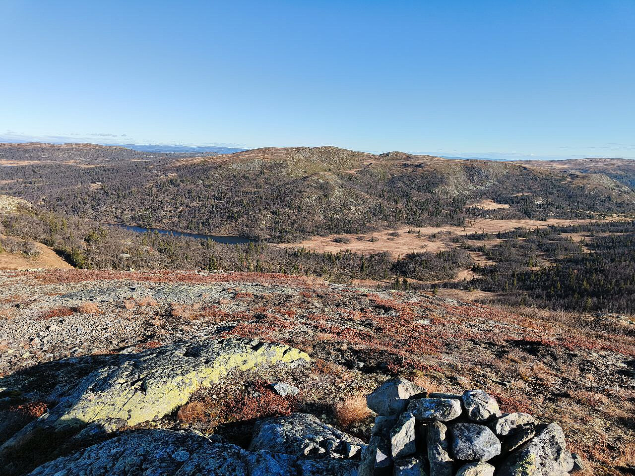 Jeg hadde nå hentet alle stolpene, og satte fra meg sekken, og tok en avstikker opp på Meitebekkfjellet - en topp jeg sjelden har besøkt.