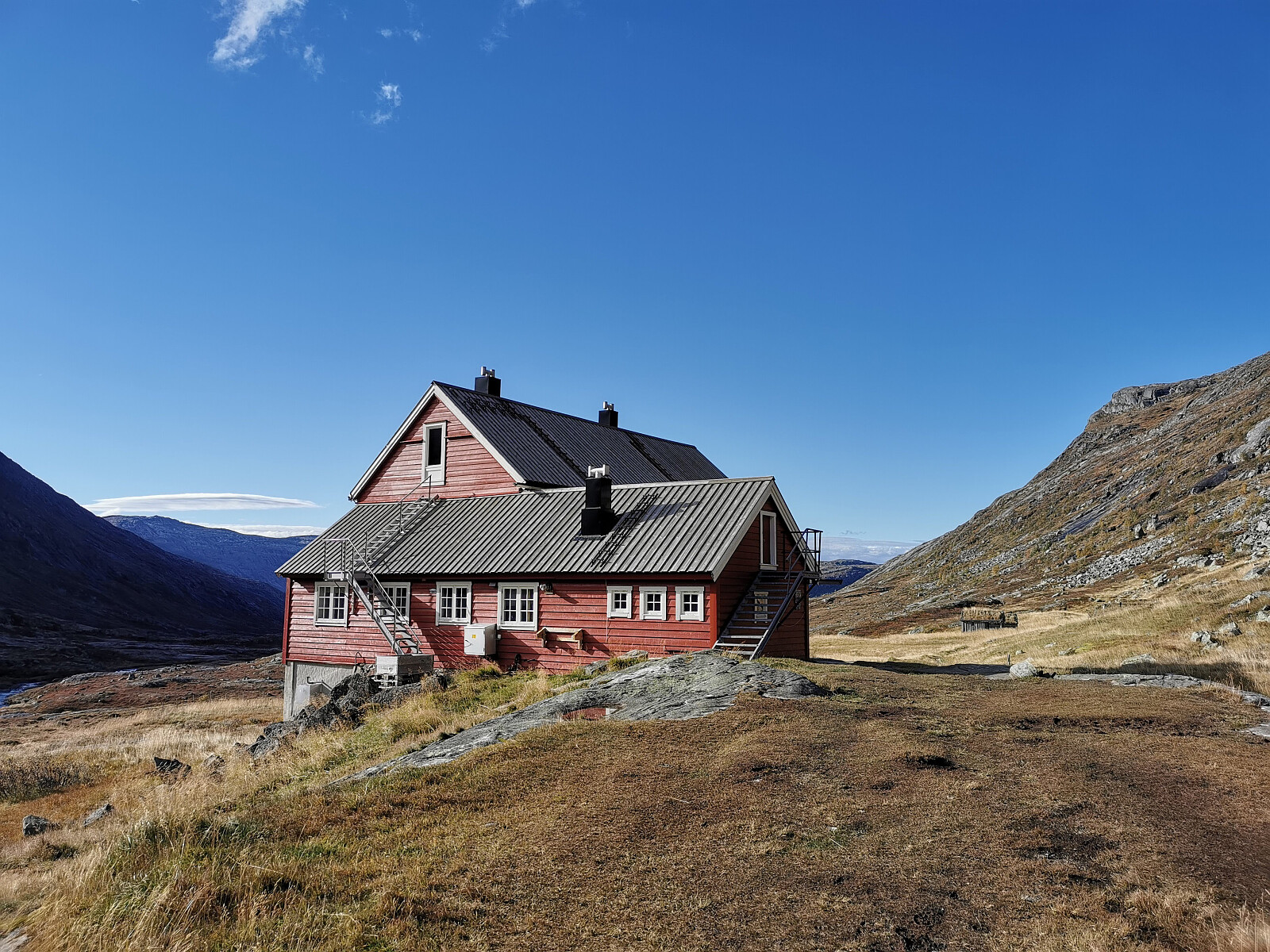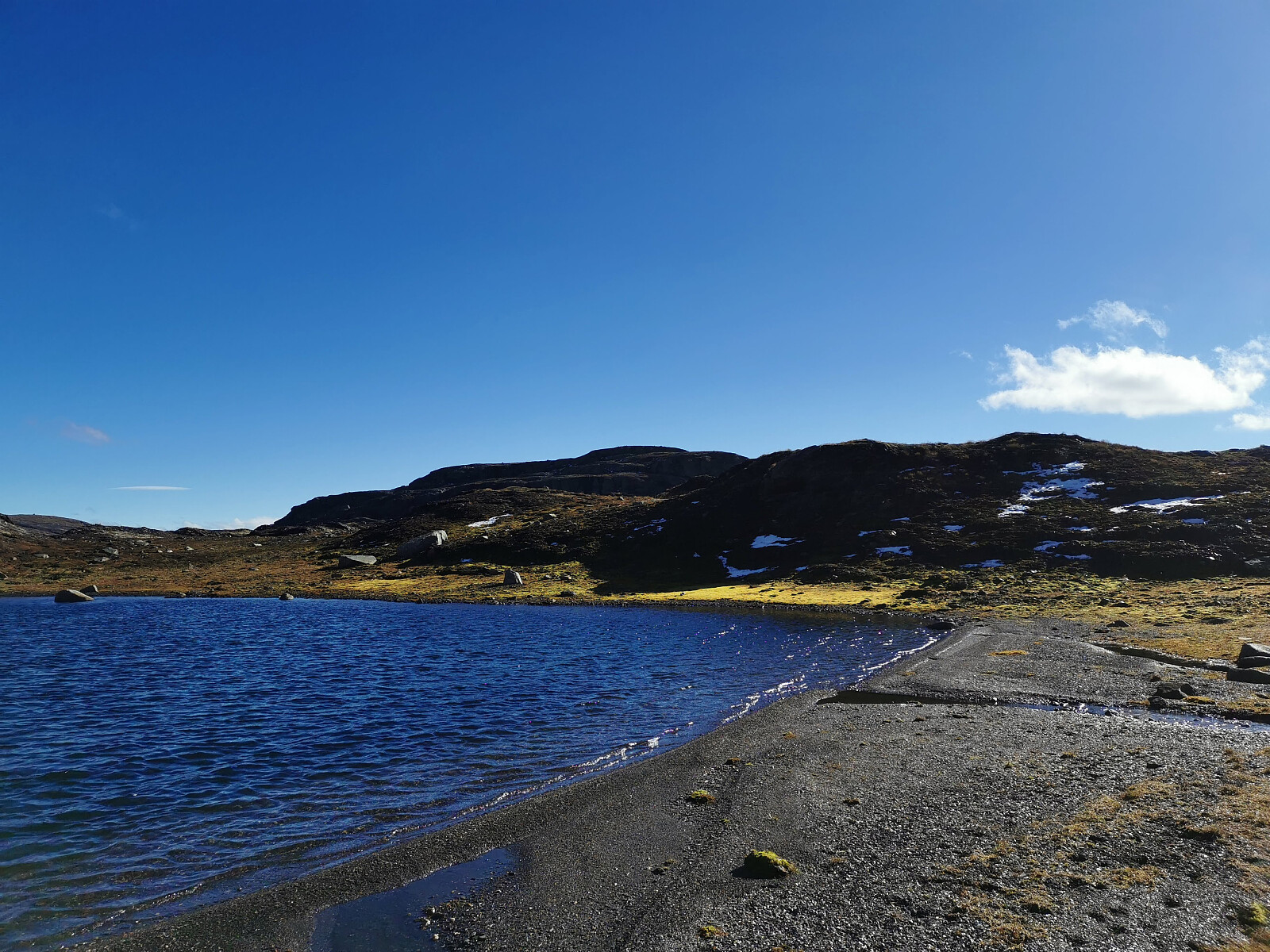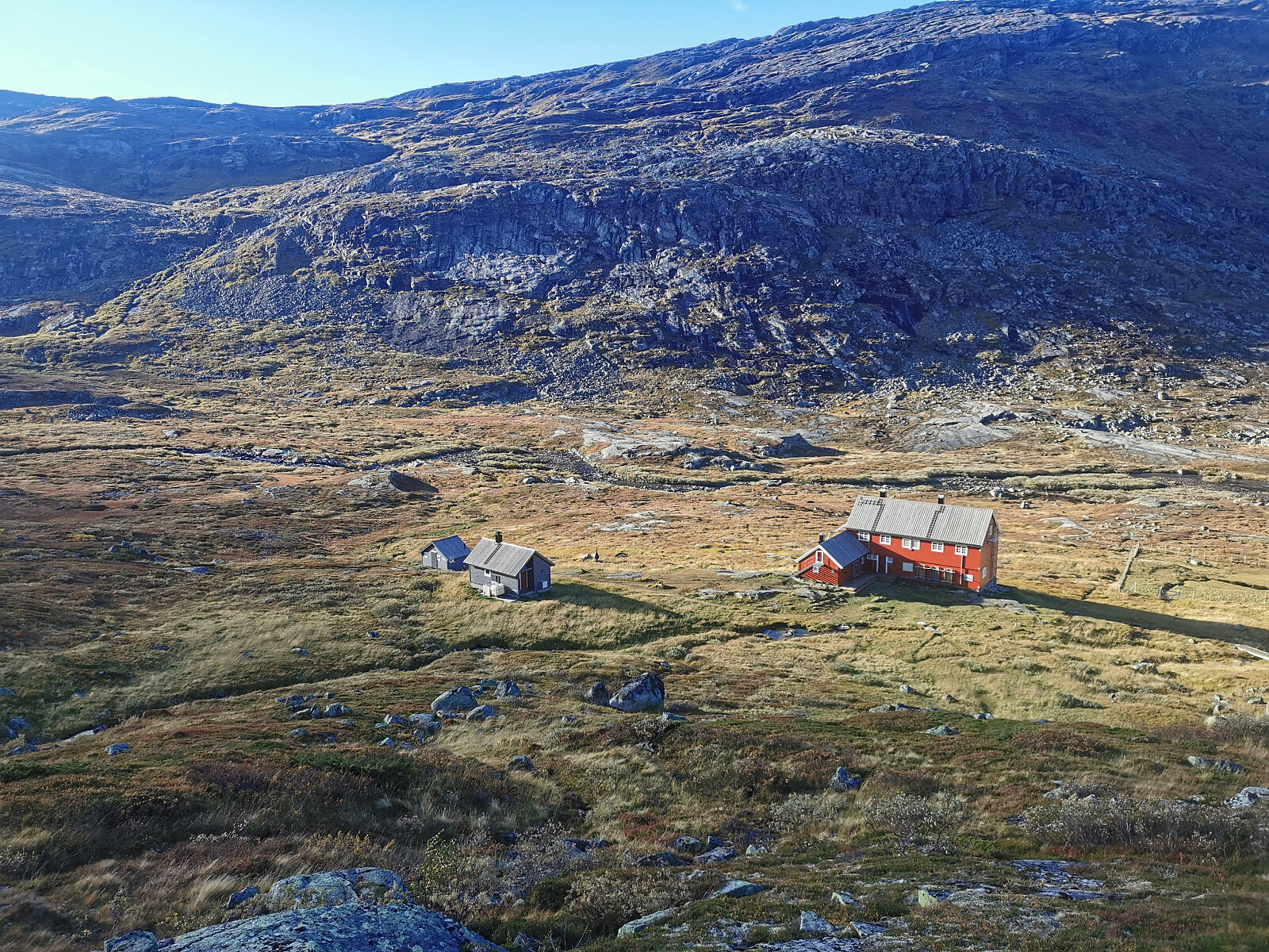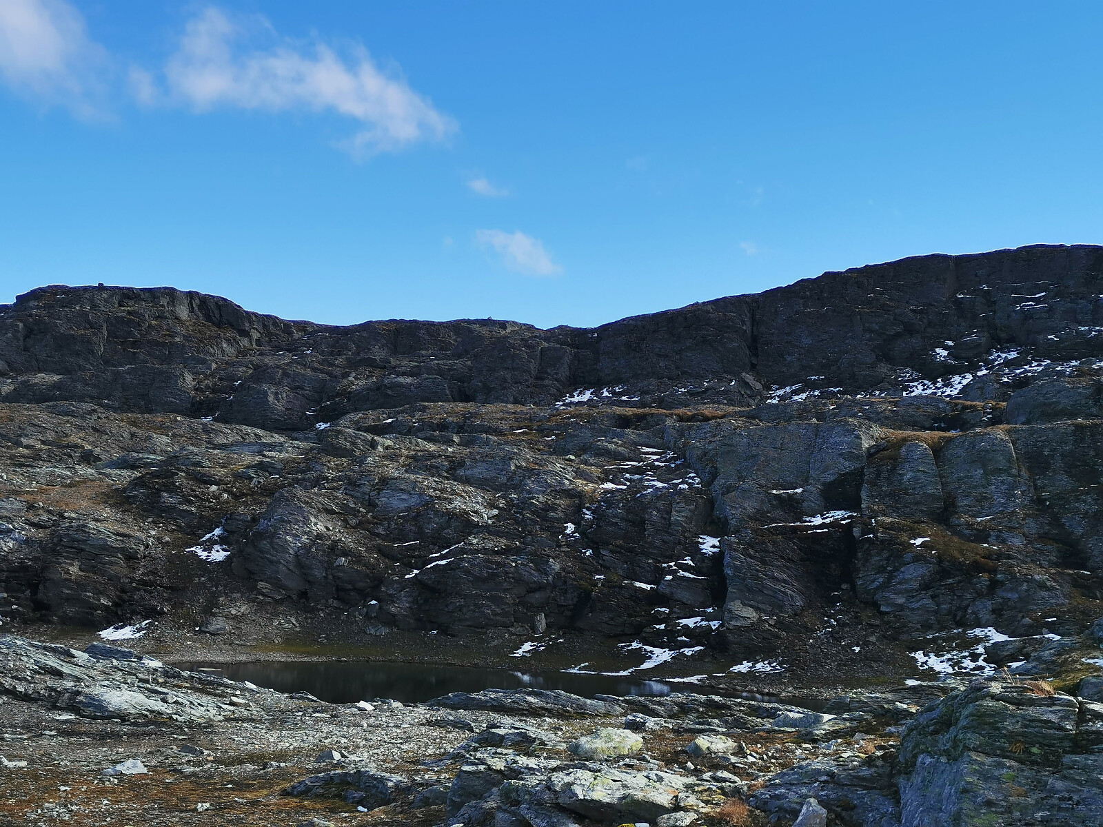 Turen videre gikk i lett terreng ned til Trollavatnet og bort til stien fra Dalamot. Fulgte denne ned til Lonavatnet hvor jeg krysset Stavalielvi ved utløpet av vannet. Deretter bar det opp T-stien til toppen av Lonaskaret, hvor jeg satte fra meg sekken. Vestsiden av Helnaberg består av flere brattheng, men jeg fant en grei rute opp (se gps tracket). Nådde dagens andre topp etter 4 timer på tur. Også her blåste det godt, så jeg vendte raskt nesen tilbake mot vest. Fulgte samme rute ned igjen til sekken. Nå var det bare 2,5 km ned igjen til Stavali. Vel tilbake på hytten, var det bare å fyre i ovnen igjen og kose meg en god bok. Denne kvelden kom det en gjest til og vi hadde en hyggelig prat i peisestuen (som var det eneste varme rommet i hytten).
