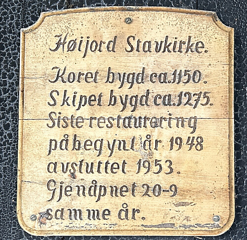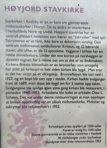 Info fra kulturminnesok.no Høyjord stavkirke: