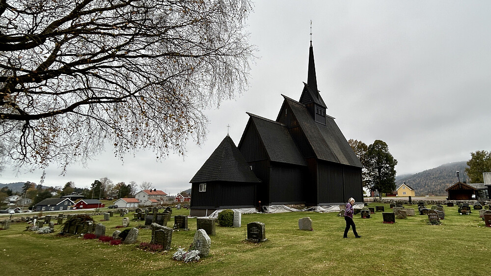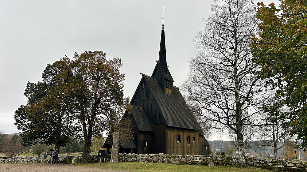 Besøk til Høyjord stavkirke på vei mot Farsund.