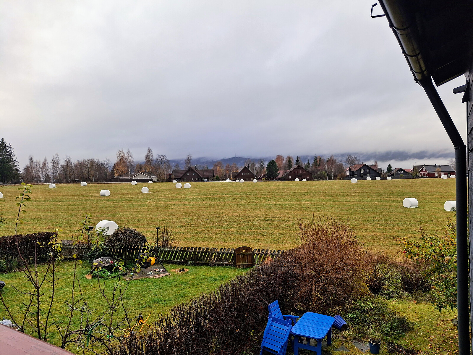 Etter å ha vært på Nygaard med knoller til vinterlagring, gikk jeg en liten tur i nabolaget. Grått med glimt av sol.