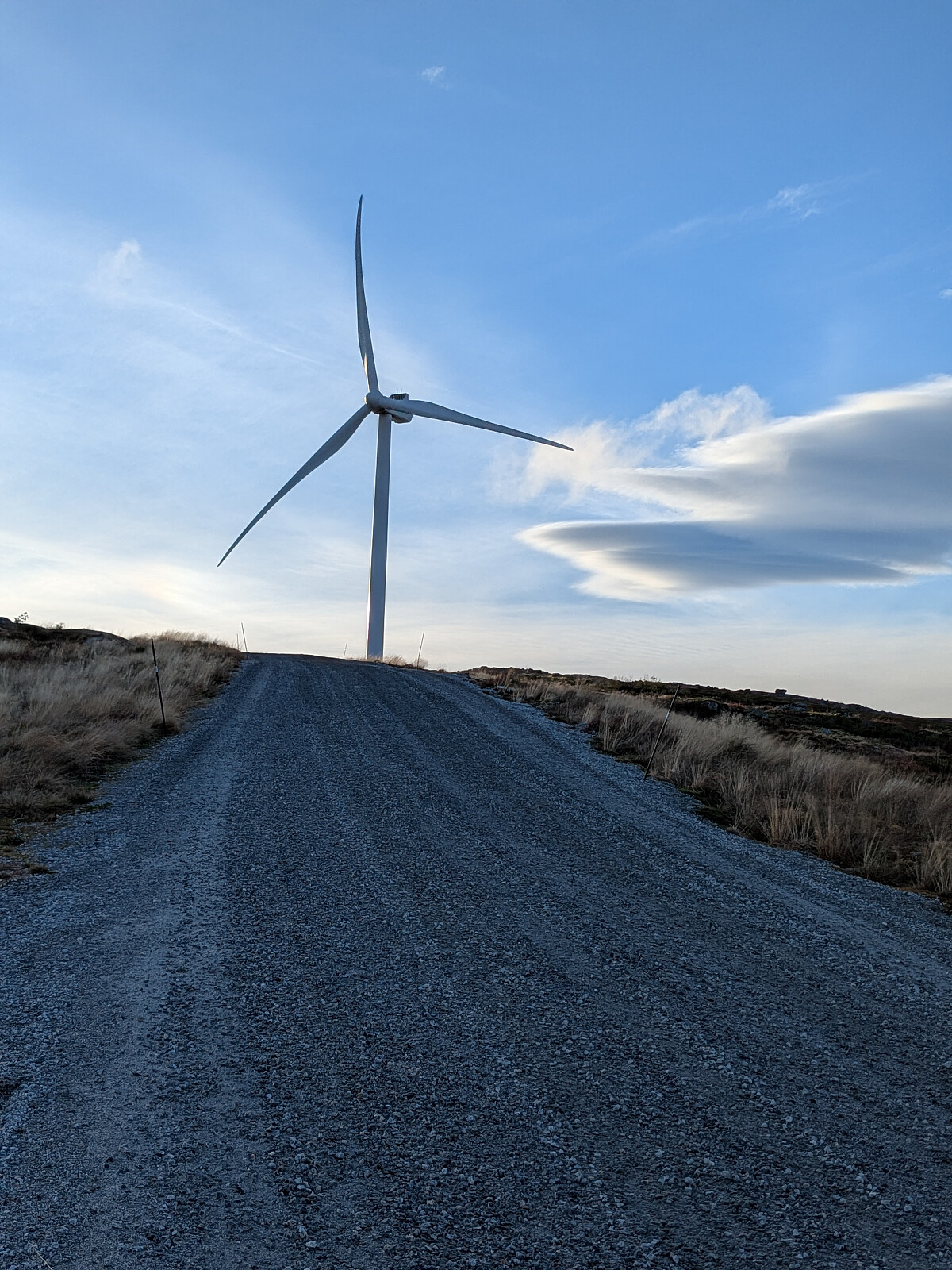 Jeg parkerte ved Storheia Parkering. Målet var Austdalsbrotet inne i vindparken. Jeg startet å gå i en seig bratt motbakke, og her ønsket jeg meg en el-sykkel eller en el-sparkesykkel. Jeg ser de fleste har benyttet sykkel. Men det er lett å bestige topper fra vei. Fra telemasta på toppen var det kanskje 60 meter å gå i terreng. Jeg er litt usikker på om topp-punktet kanskje ligger bare i Ørland. Jeg rakk kun ei rødnål her inne på denne turen på grunn av korte dager.