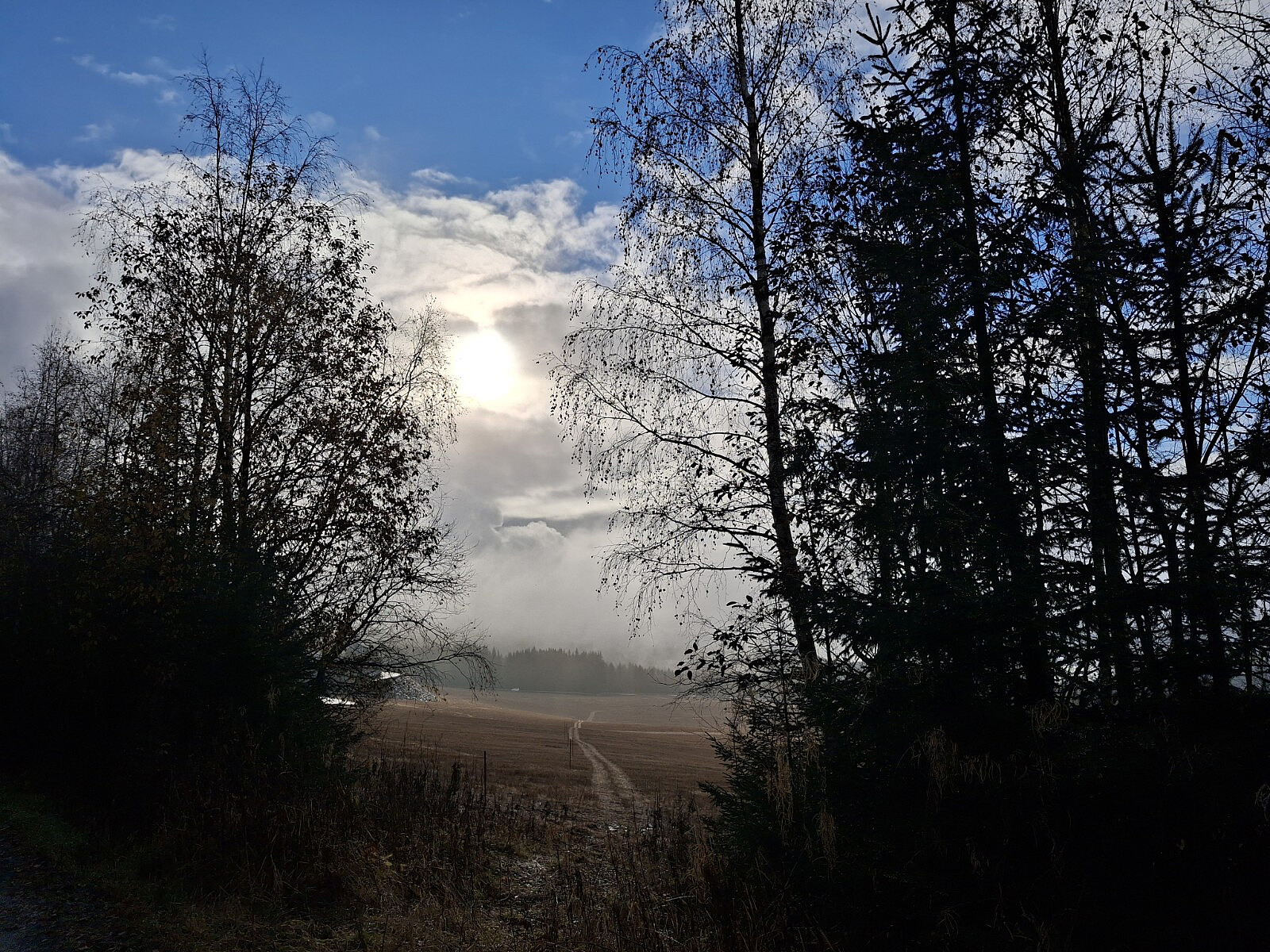 Tur om Lysgårdsbakkene. Tåke da jeg startet hjemmefra, så klarnet det opp og ble et fint lys på turen.