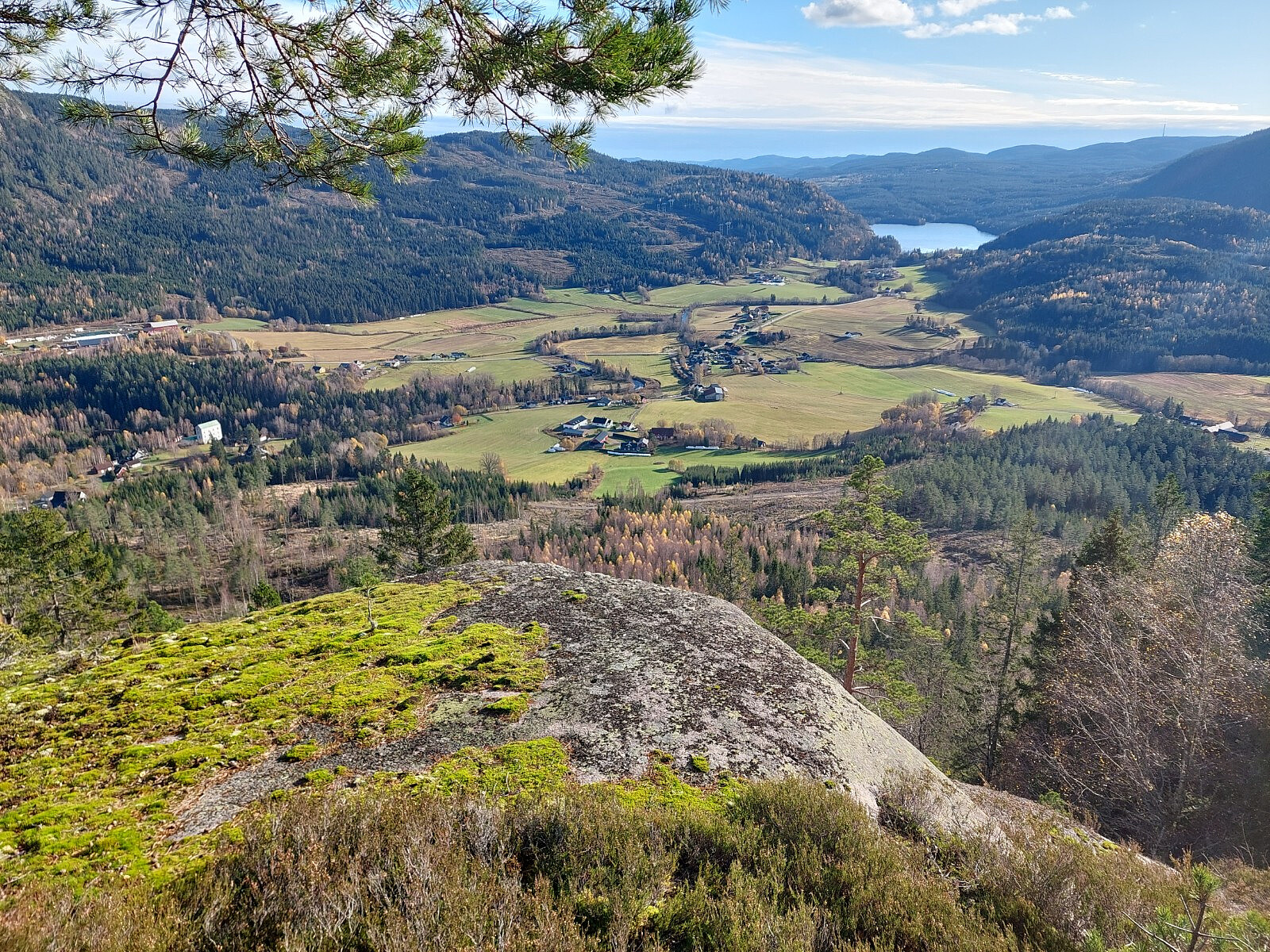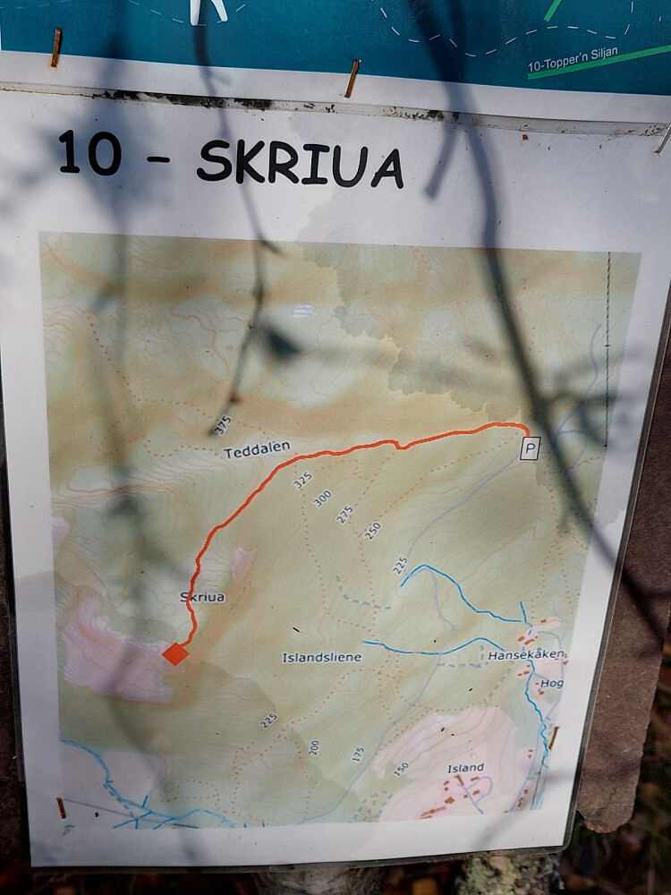Til Siljan-Oppdalsveien og tilSkriua p.plass.Flott utsikt over Oppdalen.Fin sti, men bløtt enkelte stedet