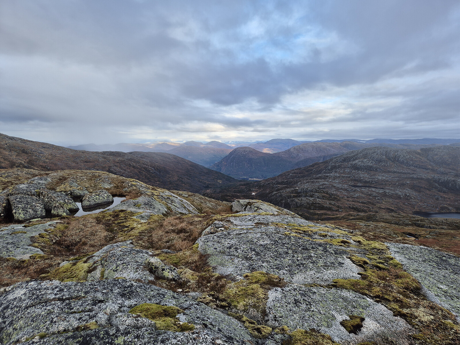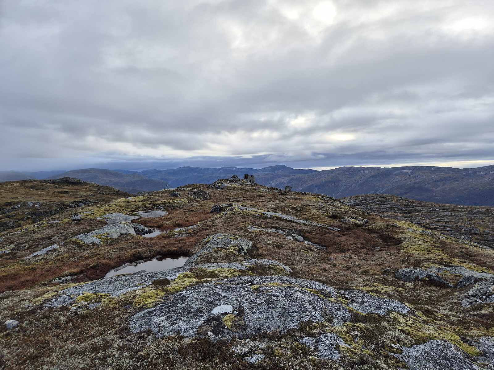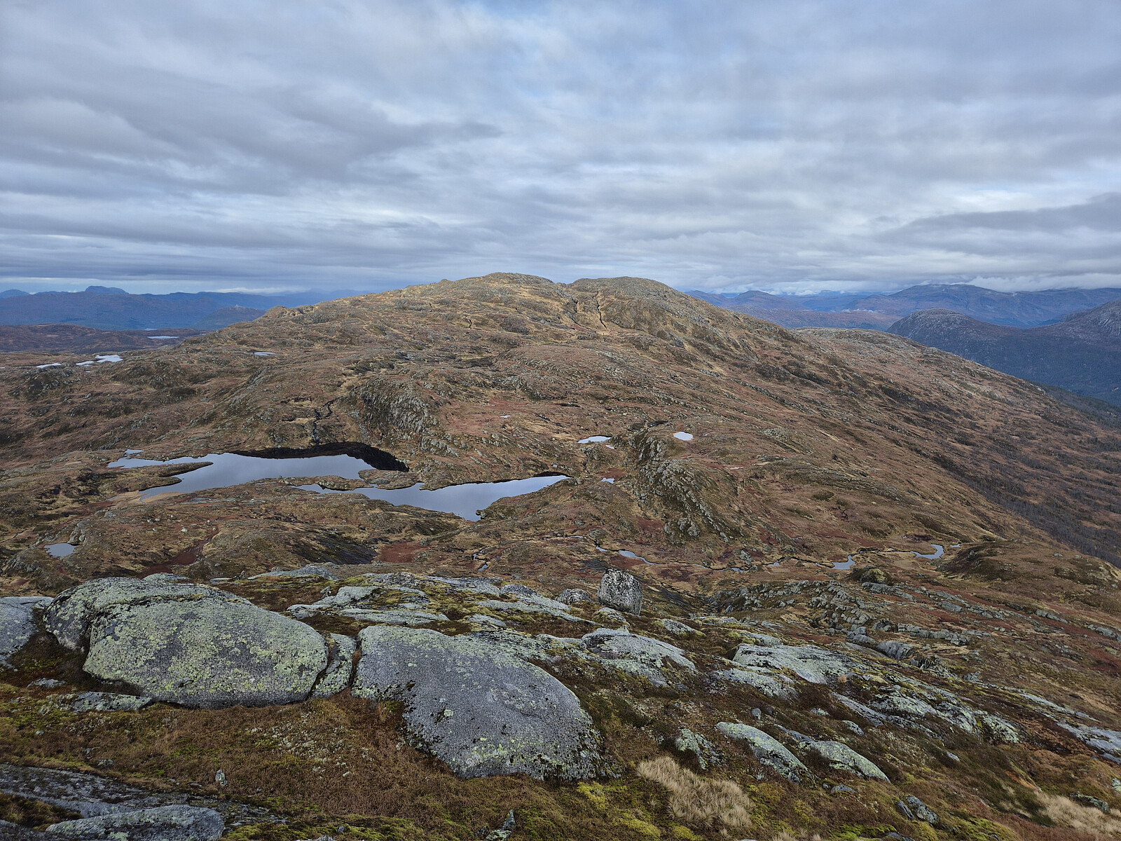 Vatnet før toppen av Svarteknibba. Eg gjekk på nordsida av vatnet.