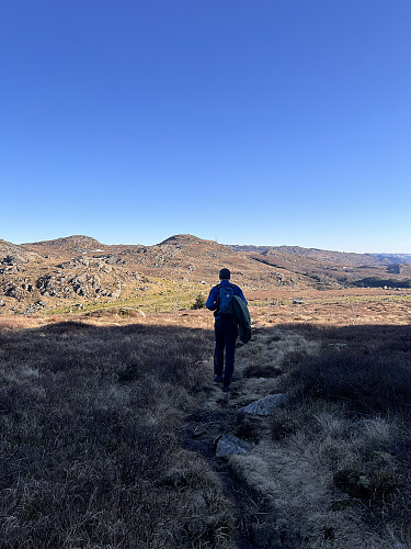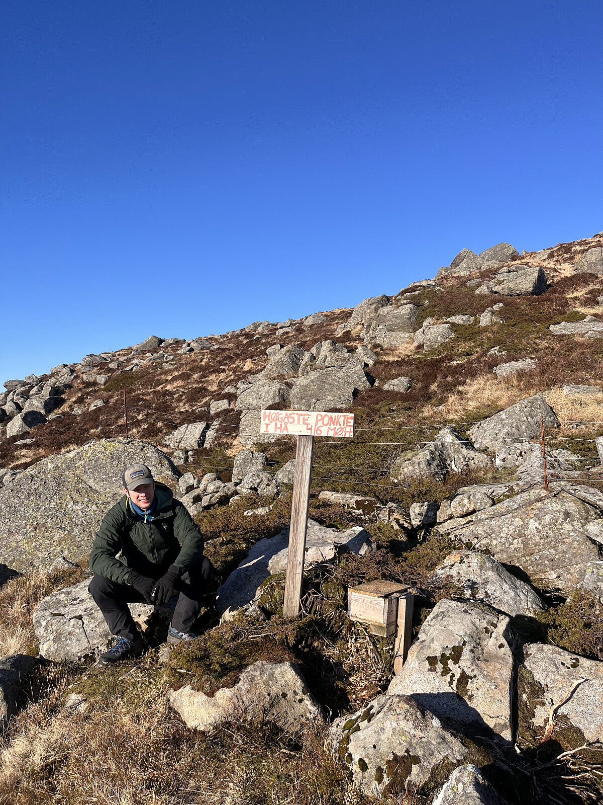 Vidare gjekk vi innom "Høgaste Ponkte I Hå" som låg i sørsida til Brusaknuden, rett på kommunegrensa.
