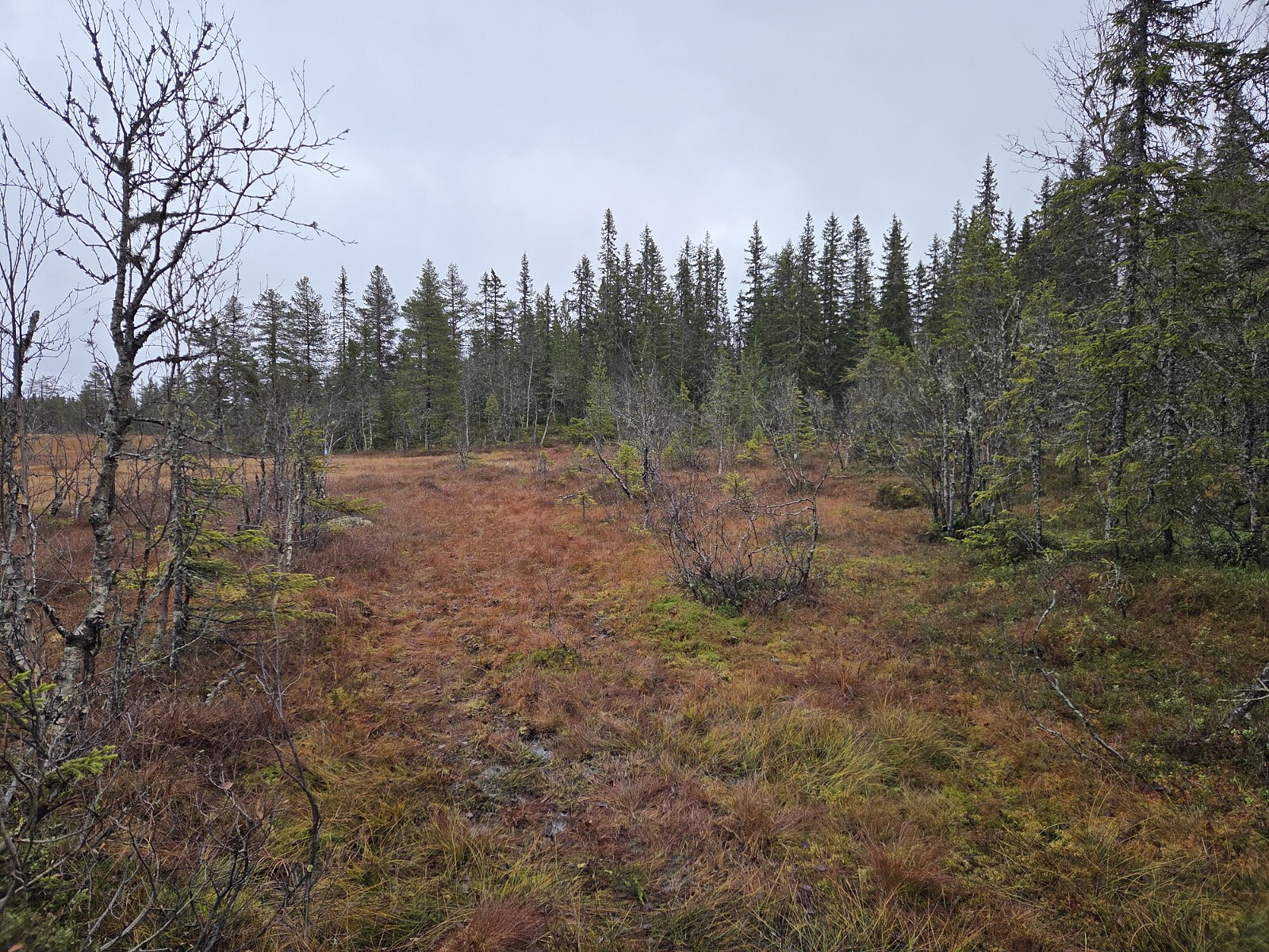 Dagens tredje topp kunne by på fin natur opp, merka sti heile vegen, og forholdsvis god utsikt frå toppen. Turen og toppen var høgdepunktet blant dei fire toppane eg gjekk på i dag.Det var varierande myrterreng og skog, og ekstra blautt i terrenget var det nok på grunn av kraftig regnvêr dagen før og helga før.