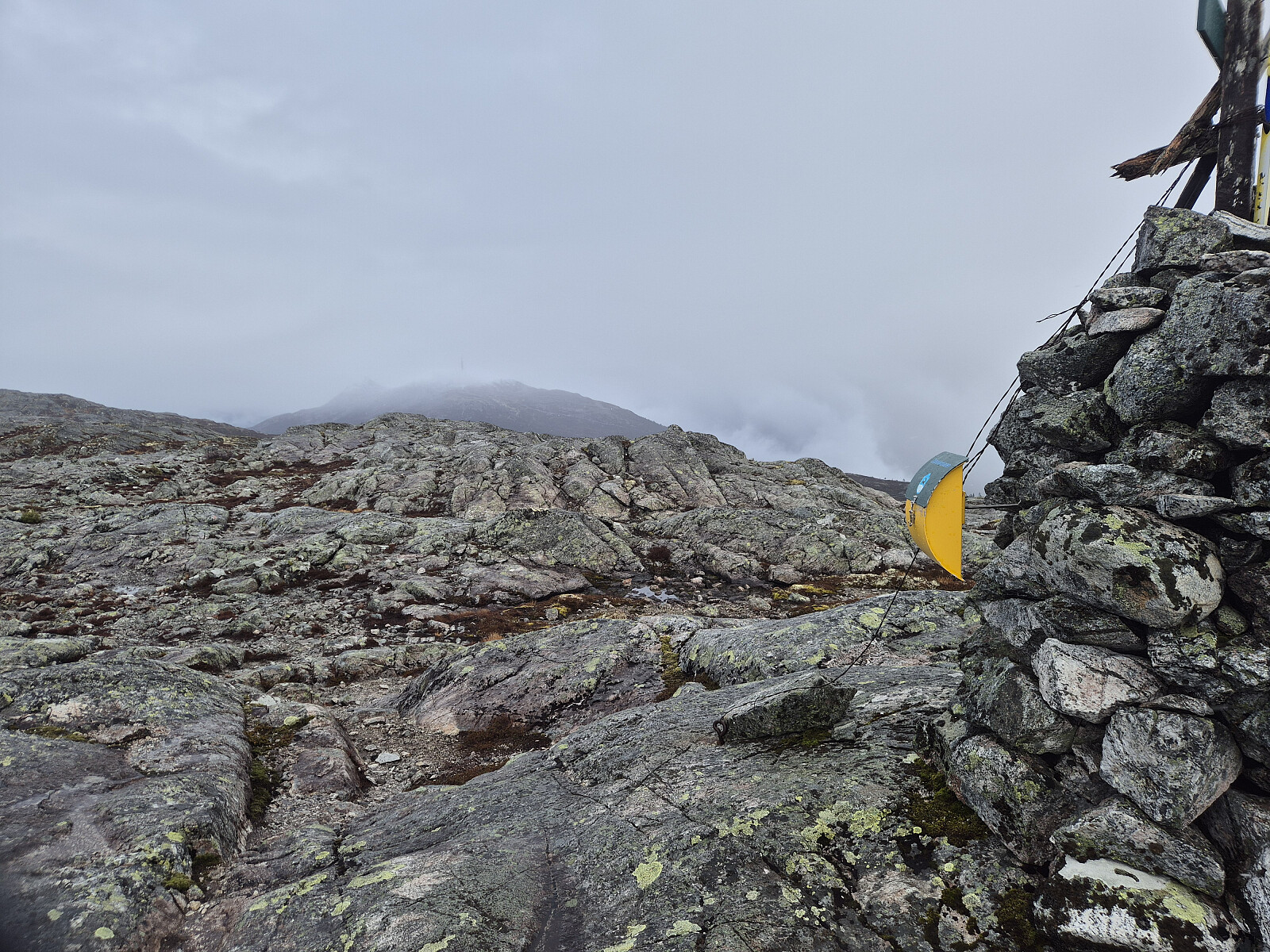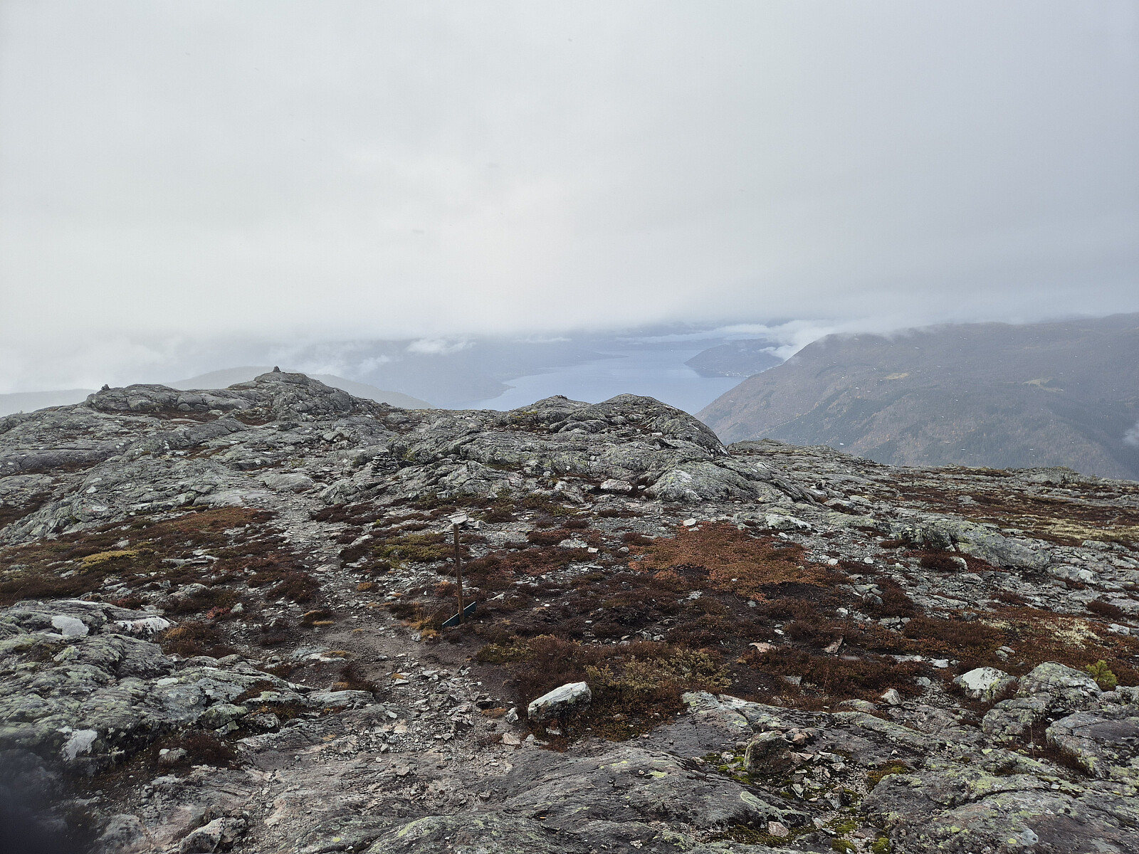 Hadde i utgangspunktet ein plan om tur i Sogndalsdalen. Men på grunn av meir regn enn meldingane tilsa, køyrte eg vidare til Haukåsen og tur til Lingesetfjellet. Parkerte ved utfartsparkering ved Haukåsen og fulgte vegen oppover forbi Lingeset og fann ein passande plass å gå mot toppen av Lingesetfjellet. Ingen tydeleg sti, men greitt å gå.