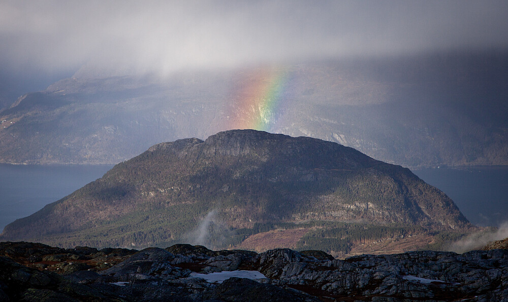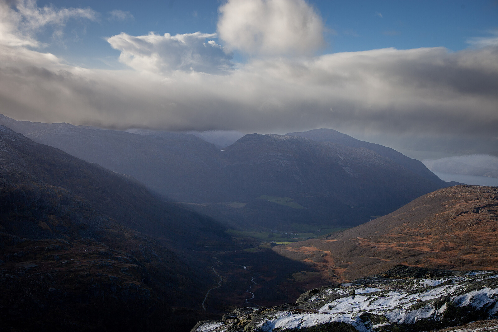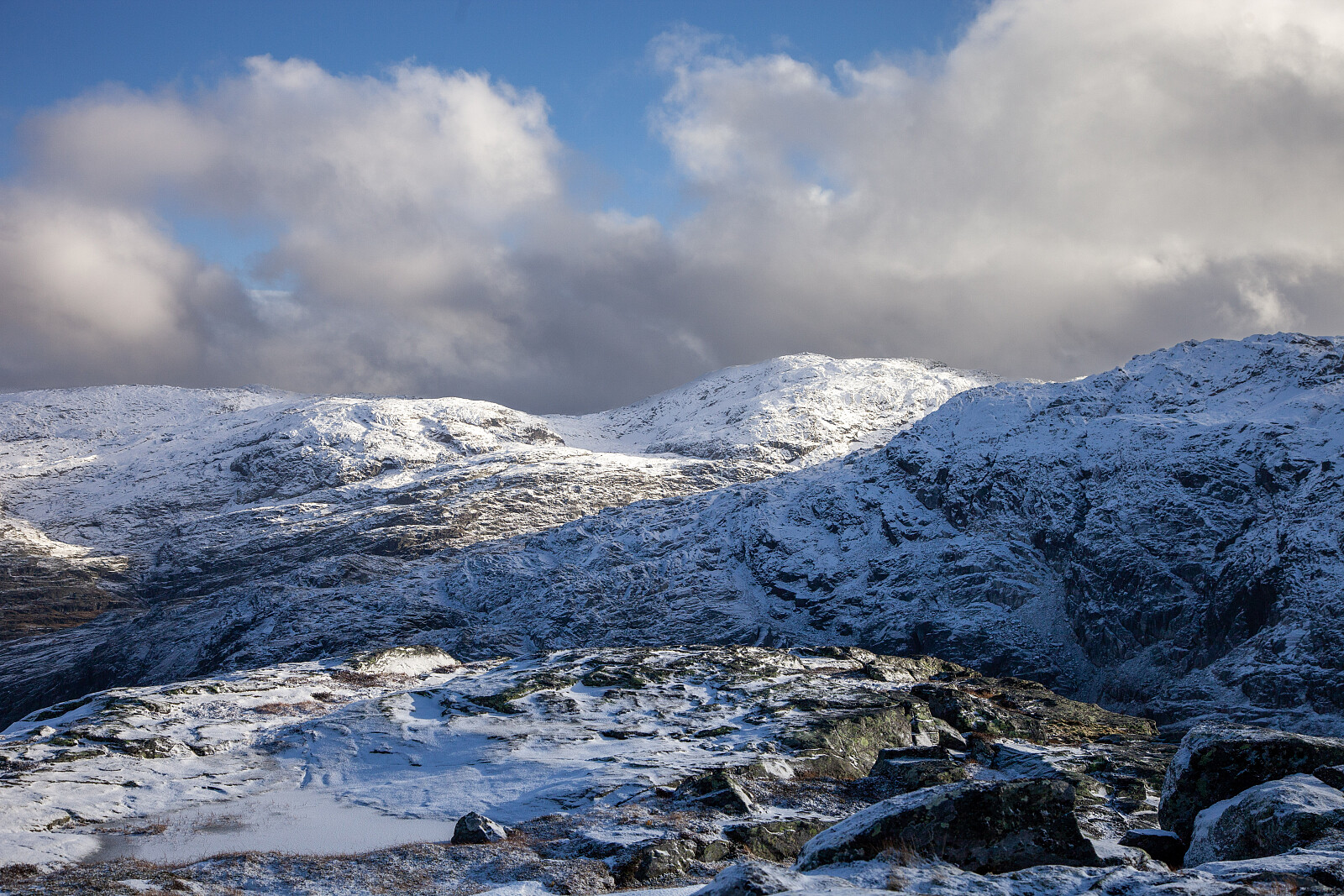 Blåste surt på toppen, men lyset og utsikten var upåklagelig. Vi hadde lurt på om vi i det hele tatt kom til å se deler av Folgefonna, men det gjorde vi. Hadde for første gang på lenge og forsåvidt for første gang på tur med Harald, tatt med meg mitt Canon 5D Mark II. Det var på tide å få litt etterlengtet kvalitet på bildene.