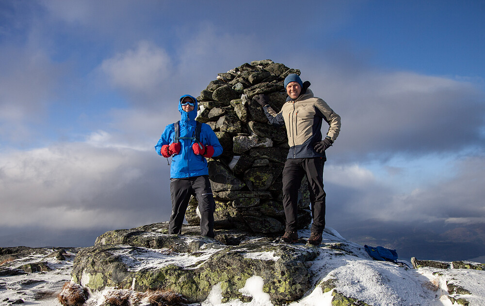 Stor og fin varde på toppen av Jonstein. Nå kan ikke lenger min mor og far skryte på seg en topp de har vært på som jeg manglet. De var her nemlig for 25 år siden. Min mor husket kun at hun synes anleggsveien opp i Skarvabotnen var kjedelig.